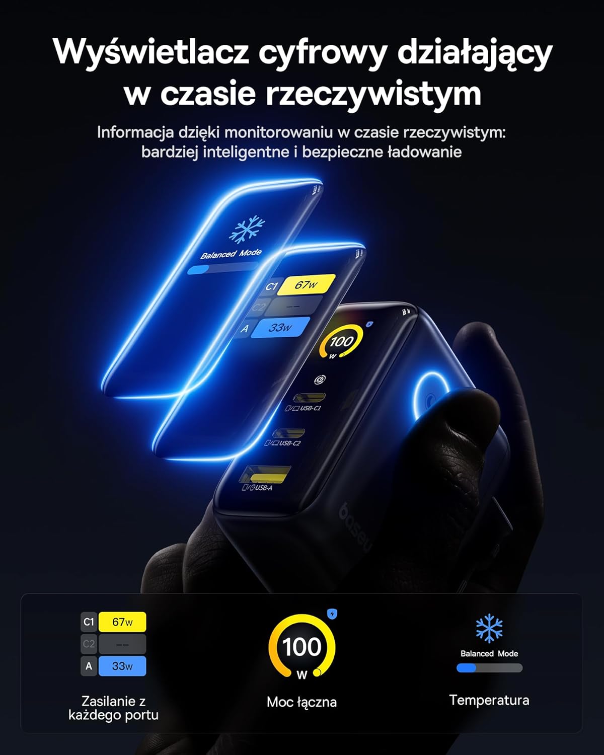 Świetna promocja na rewelacyjną szybką ładowarkę: Baseus Picogo AI USB-C GaN o mocy 100 W, z wyświetlaczem, sterowaniem dotykowym, dwoma portami USB-C i jednym USB-A, zaawansowanym systemem chłodzenia i kablem USB-C 100 W w zestawie – przeceniona aż o 57% (299 zł -> 129 zł)!