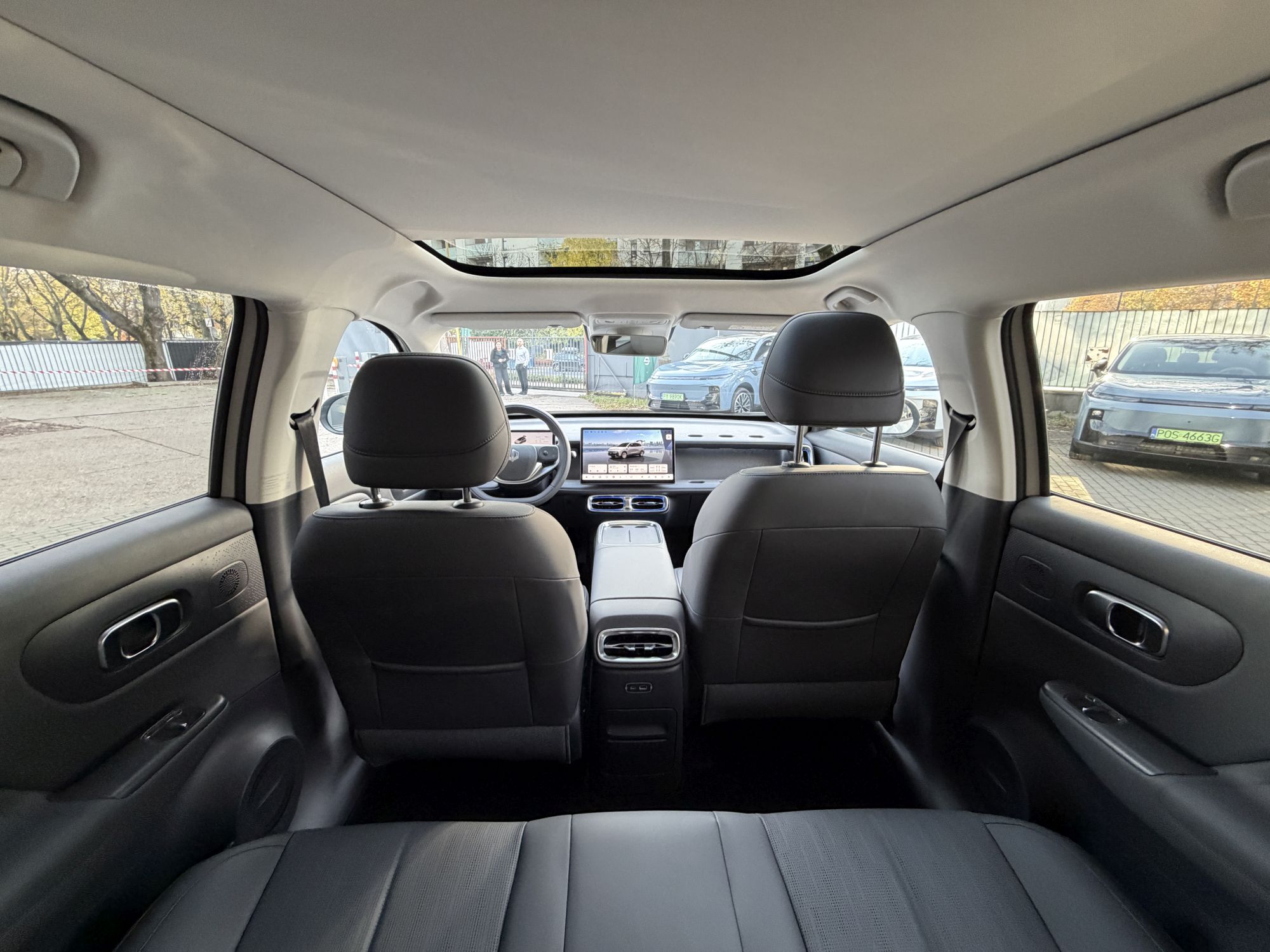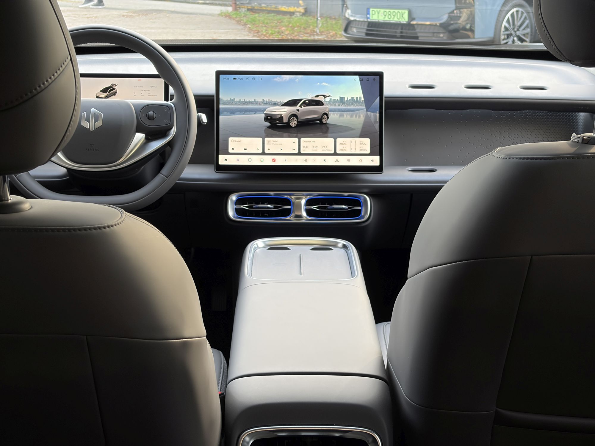 We wnętrzu dominuje duży, 14,6-calowy „pływający” ekran dotykowy, oparty na chipsecie Snapdragon 8155. Już w standardzie (wersja najtańsza LIFE) otrzymujemy m.in. panoramiczny szklany dach, 18-calowe felgi aluminiowe, kamerę 360° oraz komplet 17 systemów ADAS.