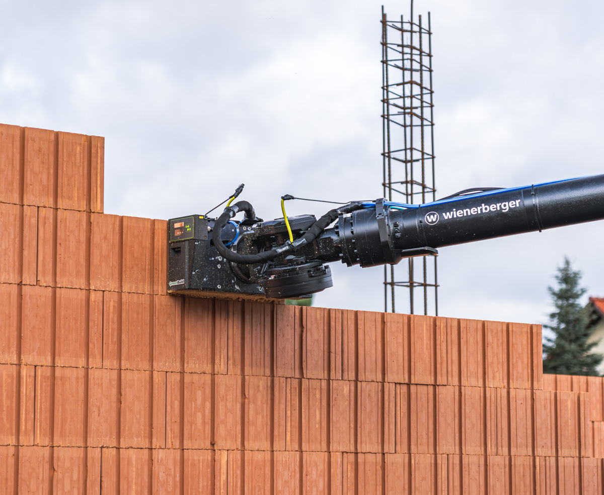 Dokładniej: dwa stworzone przez firmę wienerberger roboty, które z niezwykłą precyzją – co miałem okazje zobaczyć na własne oczy – murują ścianę za ścianą, cegła po cegle. Nie przeszkadza im deszcz, niskie temperatury, nie chorują i nie potrzebują odpoczynku. I choć nie mogą całkowicie zastąpić ludzi na placu budowy.