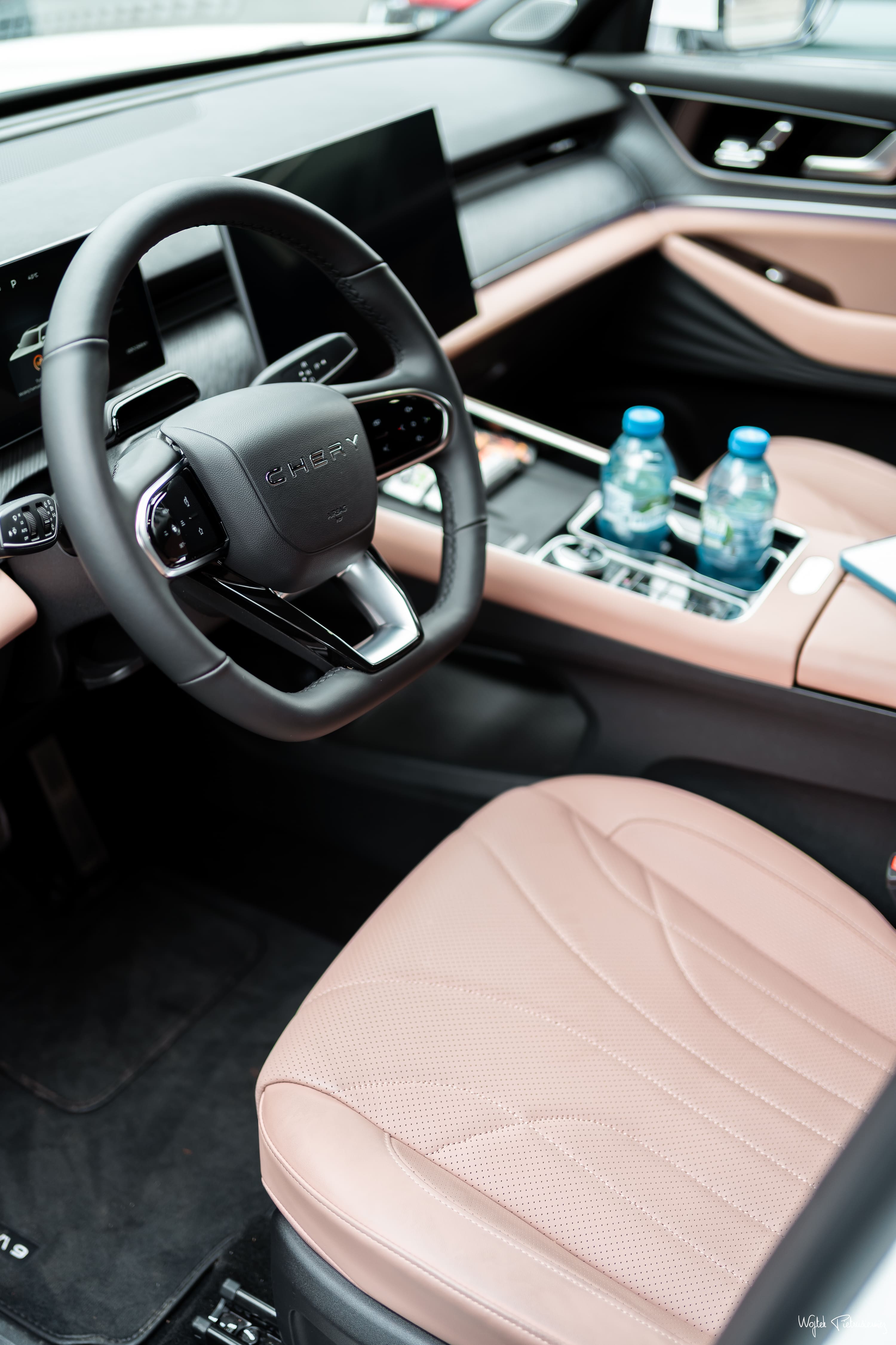 Tiggo 9 debiutuje w Polsce w wersji Prestige AWD. Oznacza to kompletną listę wyposażenia bez konieczności dobierania drogich pakietów. Wnętrze robi dobre pierwsze wrażenie – użyte materiały (w tym sztuczna skóra) i spasowanie elementów stoją na solidnym poziomie. W standardzie otrzymujemy m.in. wentylowane fotele z funkcją masażu, rozkładany fotel pasażera (tzw. szezlong z podparciem łydek), rozbudowane oświetlenie ambientowe i 14-głośnikowy system audio firmy SONY.
