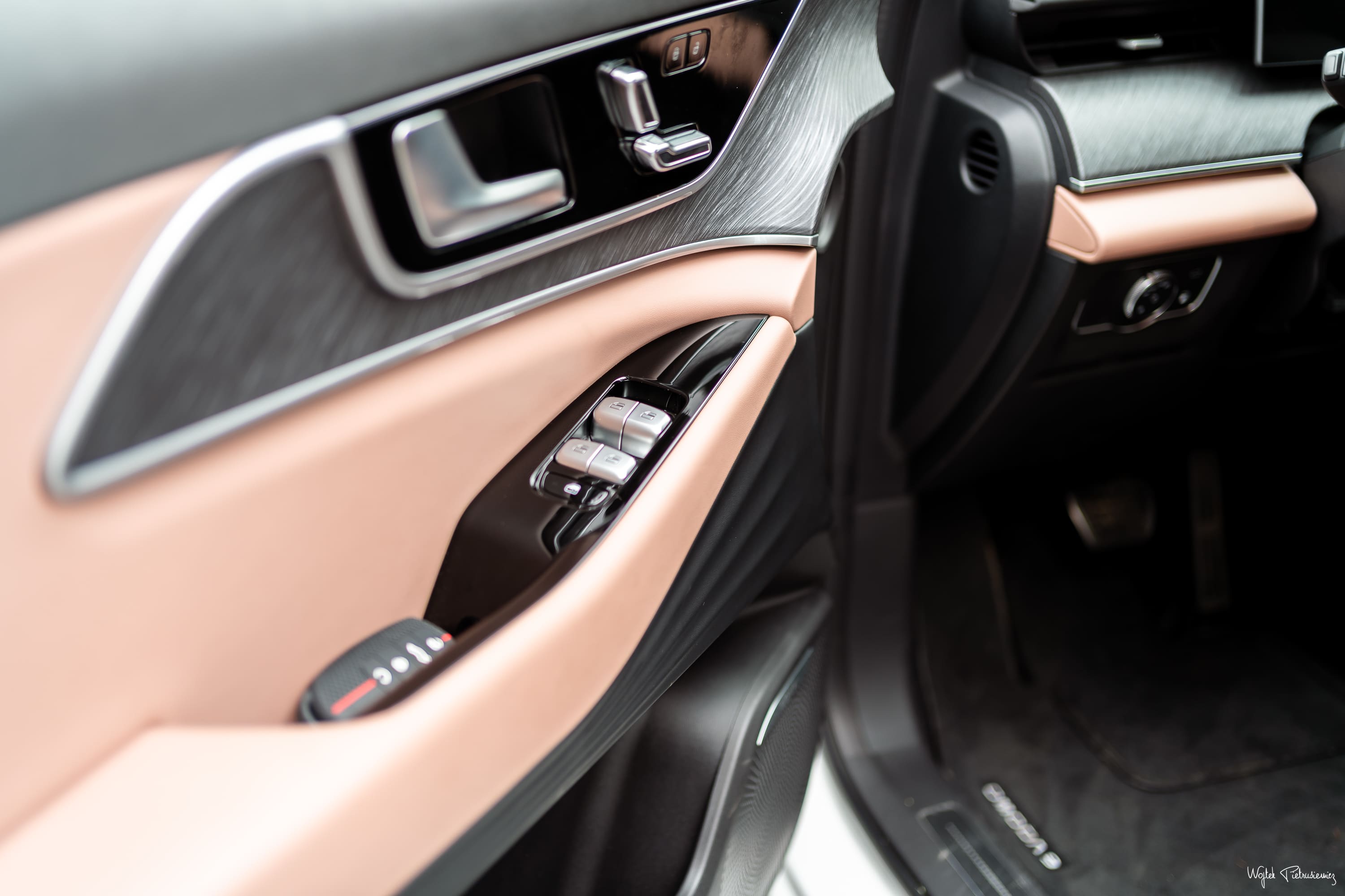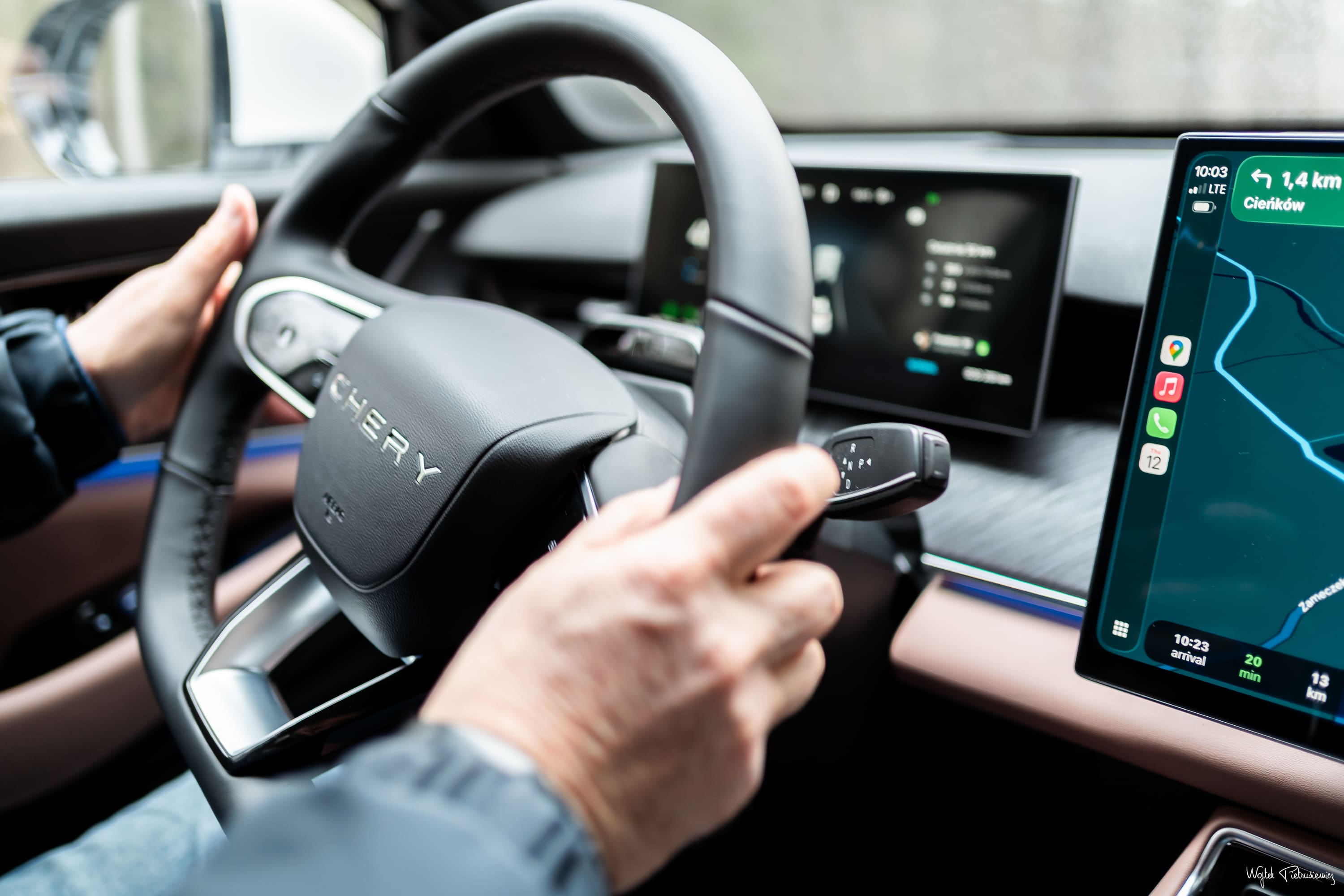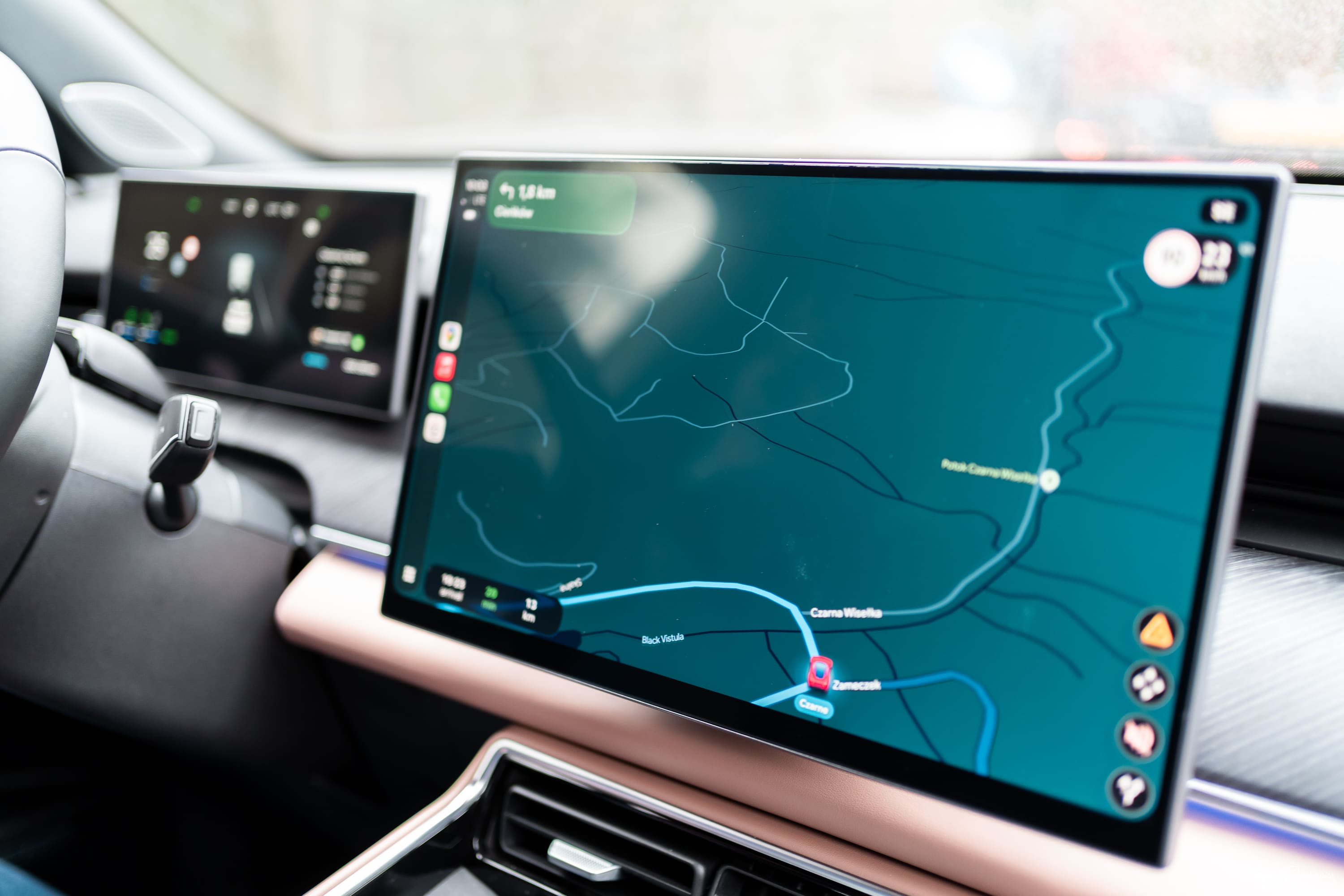 Podczas jazd Wojtek zwrócił jednak uwagę na pewne niedociągnięcia ergonomiczne. Przednie fotele wydają się skrojone pod osoby o niższym wzroście – wyższym kierowcom brakuje odpowiedniego podparcia pod uda. Obsługa podstawowych funkcji również wymaga przyzwyczajenia. 15,6-calowy ekran wspierany przez procesor Snapdragon 8155 działa płynnie, ale interfejs z drobnymi ikonami bywa nieczytelny podczas jazdy. Schowanie regulacji lusterek zewnętrznych głęboko w podmenu to rozwiązanie, które może być nieintuicyjne dla europejskich użytkowników.