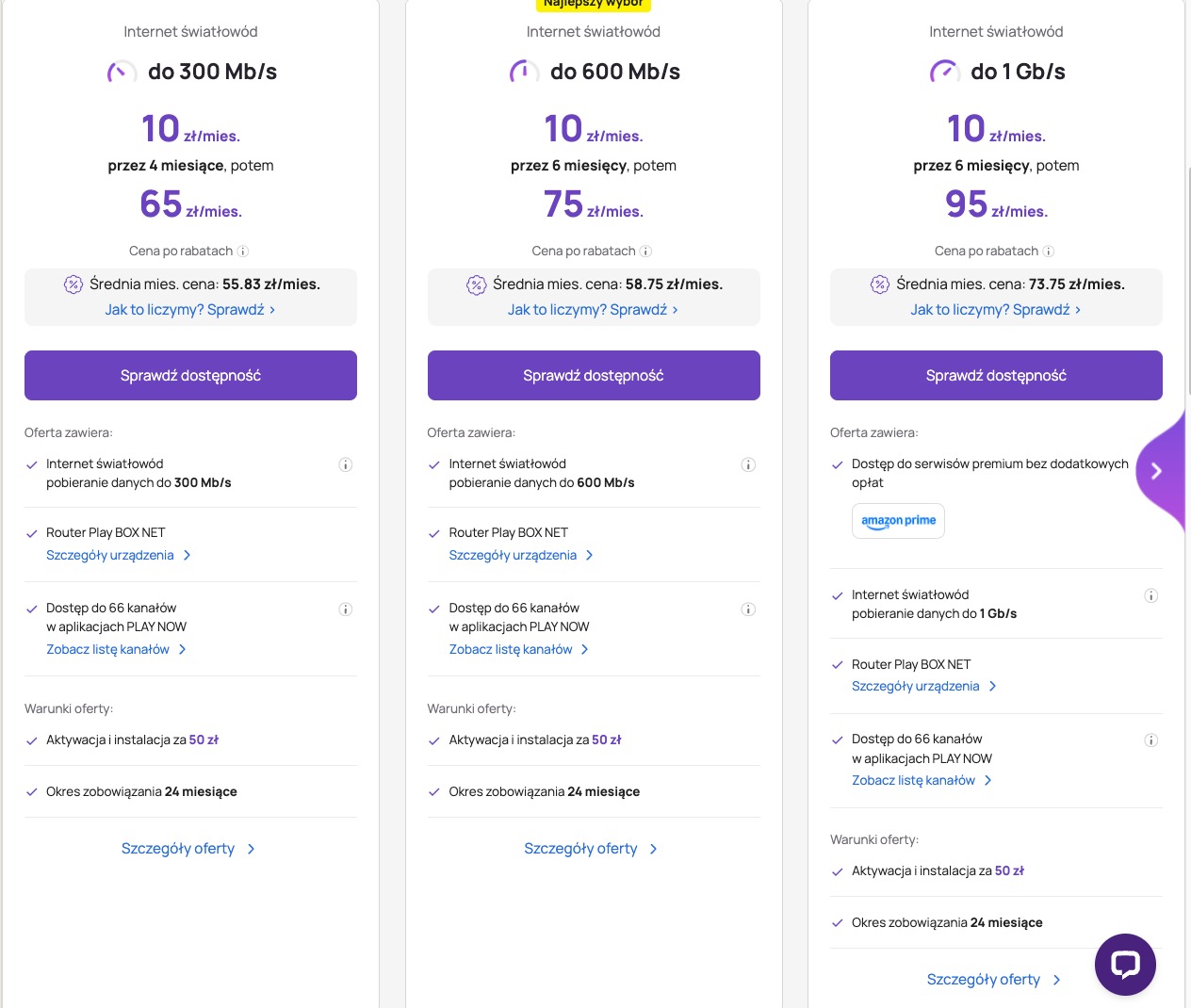 Do większości polskich mieszkań oraz domów (z dostępem do światłowodu) dociera infrastruktura ograniczająca transfer do 1 Gb/s. Istnieją takie lokalizacje, gdzie operatorzy oferują 2-gigabitowy światłowód, a choćby połączenie do 8 Gb/s. Oznacza to, iż w praktyce większość wybranych klientów otrzyma dostęp do światłowodu Play o pobieraniu do 1 Gb/s (i wysyłaniu 300 Mb/s).