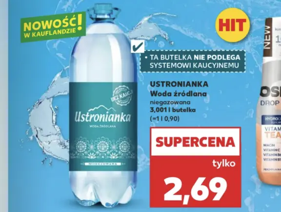 Tutaj należy wyróżnić sieć sklepów Kaufland oraz firmę Ustronianka sp. z o.o. należącą do spółki ZMB Capital. Najnowsza gazetka promocyjna zawiera bowiem pozycję, nad którą od samego rana pastwią się praktycznie wszystkie lokalne media. Jak możecie zobaczyć poniżej, wprowadzono wodę zamkniętą w butelce o pojemności 3,001 l – nie łapie się ona zatem na system kaucyjny. Tym samym propozycja jest znacznie tańsza od objętych przepisami produktów.