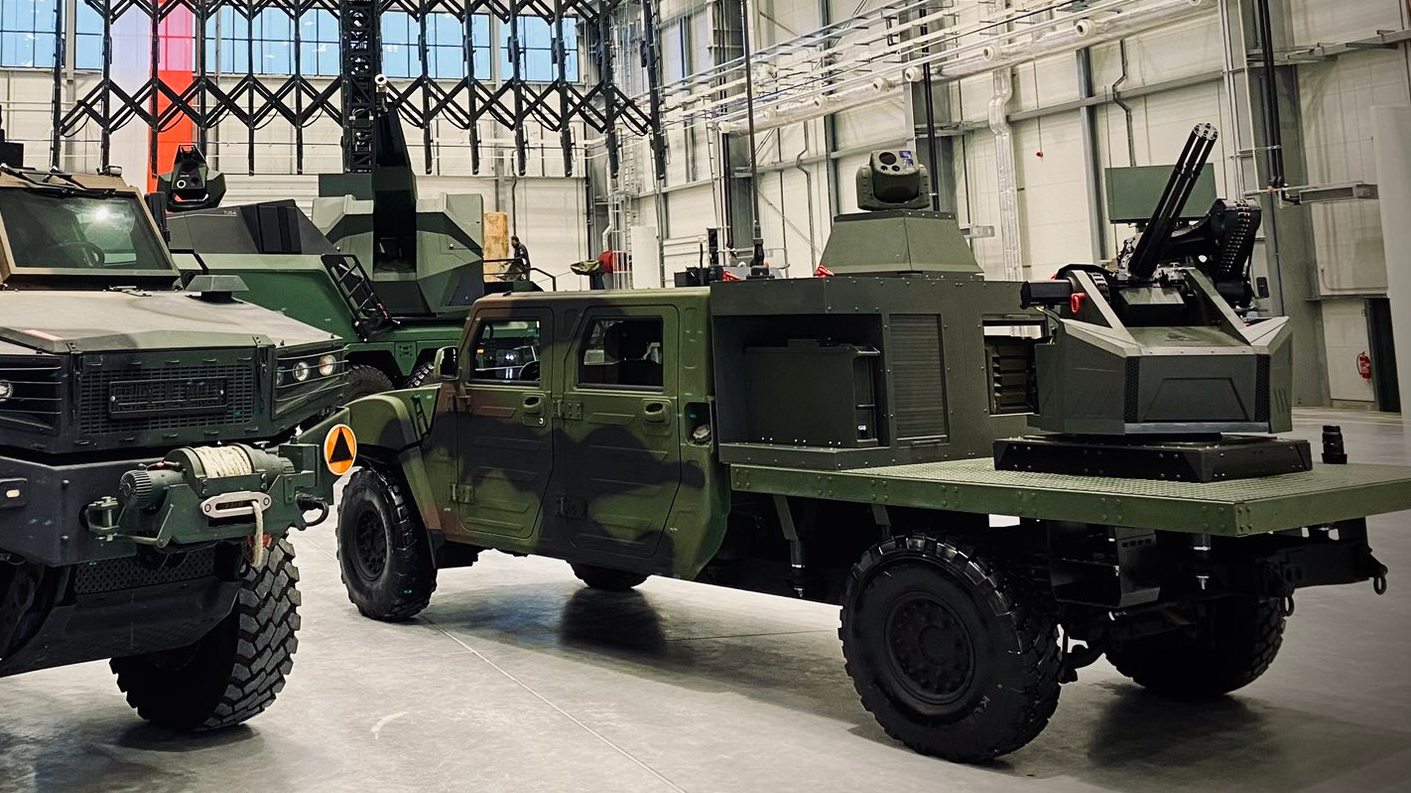 System San podczas prezentacji. Fot. PGZBaterie będą wyposażone w szeroki wachlarz efektorów: od programowalnej amunicji, armat kalibru 30 i 35 mm, przez wielolufowe karabiny maszynowe, aż po kierowane pociski rakietowe kalibru 70 mm APKWS. Kluczowym elementem ma być jednak walka niekinetyczna, zaawansowane zagłuszarki (systemy walki radioelektronicznej), które oślepią wrogie maszyny lub spalą ich elektronikę, zanim te zdążą wyrządzić szkody. Wszystko to spięte w całość przez radary i sensory nowej generacji.