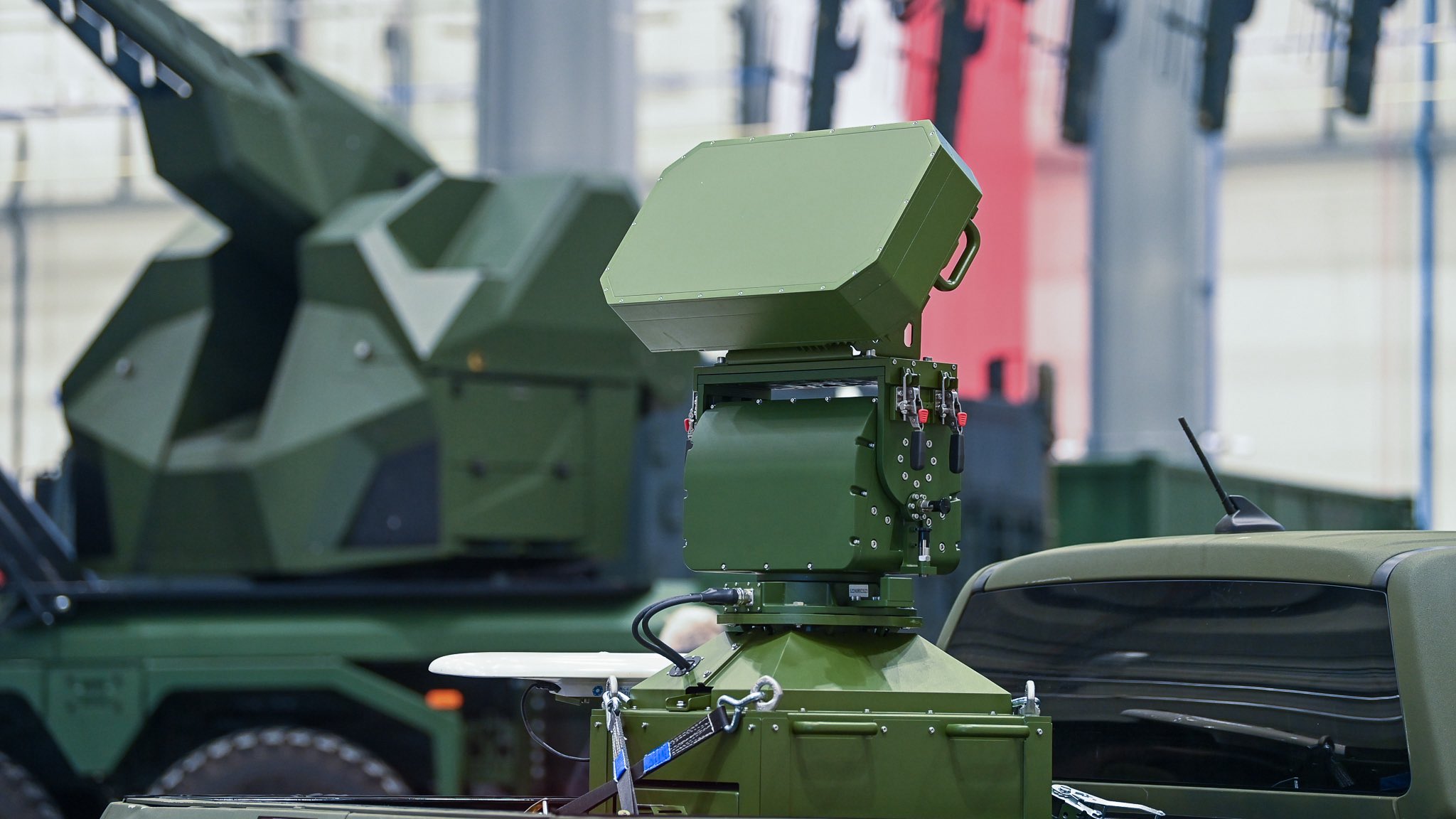 System San podczas prezentacji. Fot. PGZSan ma działać jak inteligentny organizm: radary i kamery wykrywają zagrożenie, system analizuje trajektorię i dobiera najtańszy oraz najskuteczniejszy efektor do jego neutralizacji. Chodzi o to, by nie strzelać do taniego drona z drogiej rakiety, jeżeli można go unieszkodliwić serią z działka lub impulsem elektronicznym.