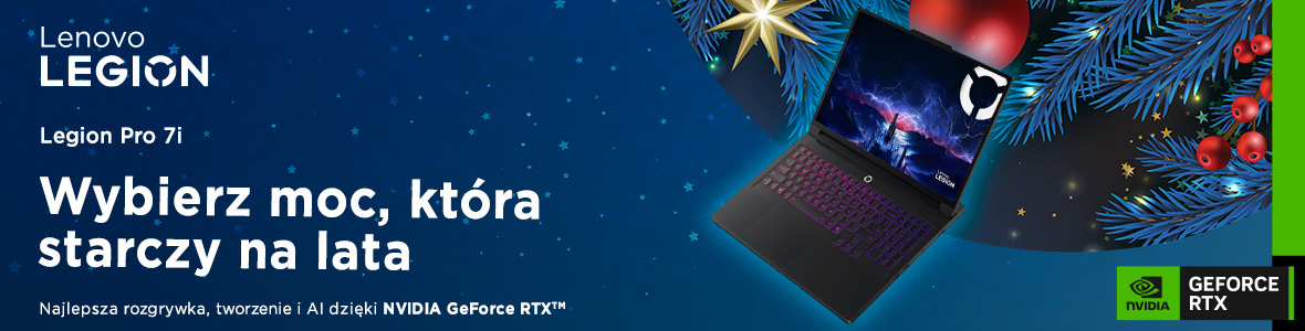 Okres świąteczny to tradycyjnie czas nadrabiania zaległości w grach i sprawdzania najnowszych propozycji. To też moment, w którym bardzo gwałtownie wychodzi na jaw, czy nasz laptop jeszcze daje radę, czy już tylko „jakoś to ciągnie” przy obniżonych detalach. Lenovo Legion Pro 7 16IAX10H z kartą NVIDIA GeForce RTX 5090 został zaprojektowany dokładnie pod ten scenariusz: to maszyna, która ma bez zadyszki dźwignąć najnowsze gry z DLSS 4, pełnym ray tracingiem i całym pakietem technologii RTX, a przy okazji sprawdzić się jako sensowny komputer do pracy, tworzenia treści i AI.