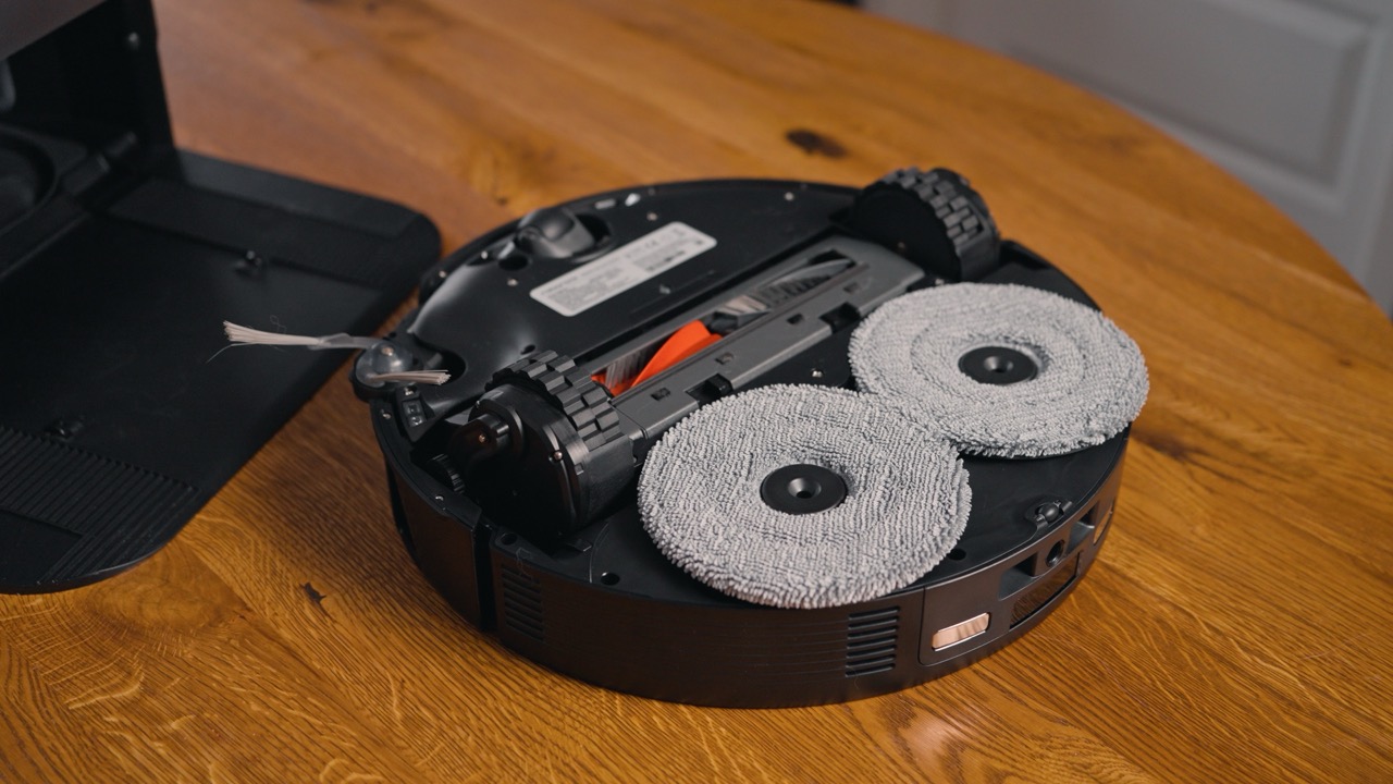 Roborock Saros 20 wyposażony został w dwa obrotowe mopy; jeden montowany jest na wysuwanym ramieniuTestowany przez nas Roborock Saros 20 ma dwa mopy, które obracają się z prędkością 200 obr./min. z kilkoma dodatkowymi funkcjami (w tym regulowanym naciskiem o sile do 13 N oraz inteligentnym wykrywaniem brudu). Takie nakładki w pełni się sprawdzają do gruntownego oraz higienicznego mycia podłóg.