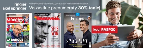 Prenumeraty czasopism z wydawnictwa Ringier Axel Springer o 30% taniej w Nexto do 14 grudnia. Podajemy kod „RASP30”. Np. Newsweek, Forbes, Przegląd Sportowy. Format to tylko PDF.
