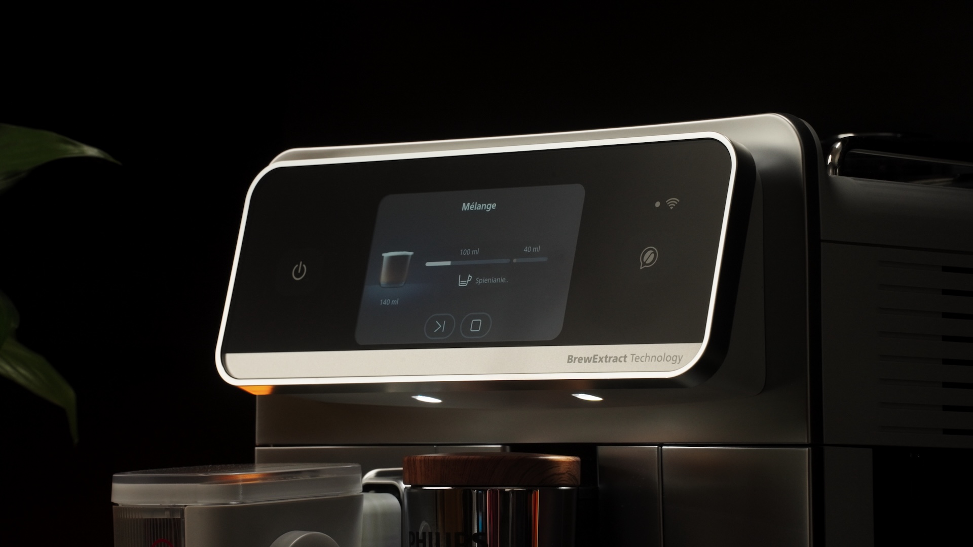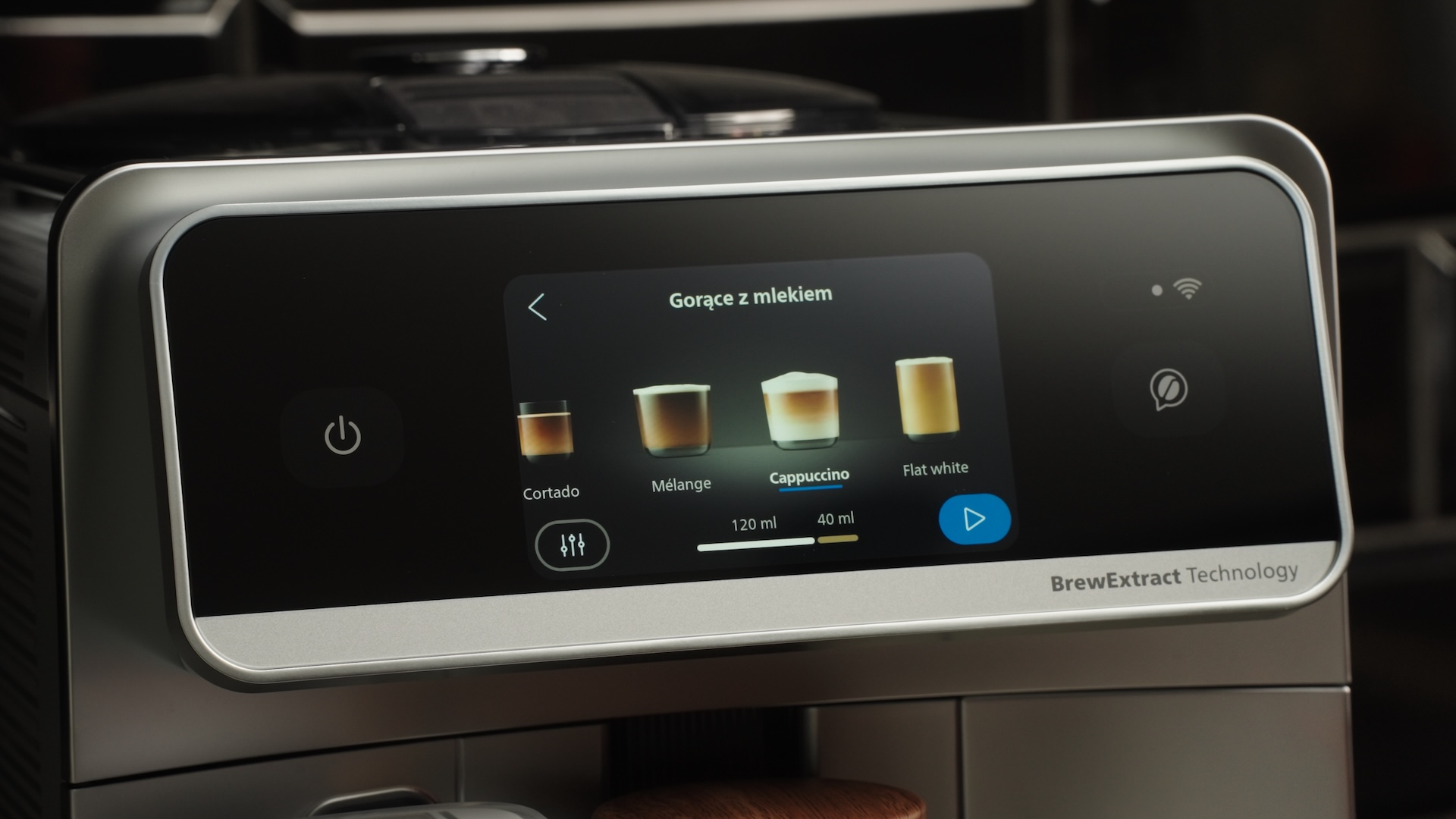 Lista opcji jest naprawdę długa, bo napojów do wyboru jest około 50, ale na tym wcale się nie kończy. Dla większości z nich możemy ustawić samodzielnie nie tylko objętość czy proporcje, ale też intensywność czy temperaturę i w razie czego dorzucić jeszcze bonusowego shota. Philips LatteGo Pro ma zresztą nowy blok zaparzający, który pozwoli na jeszcze precyzyjniejsze dopasowanie kawy do naszego gustu – samych poziomów doboru intensywności jest teraz aż 7.