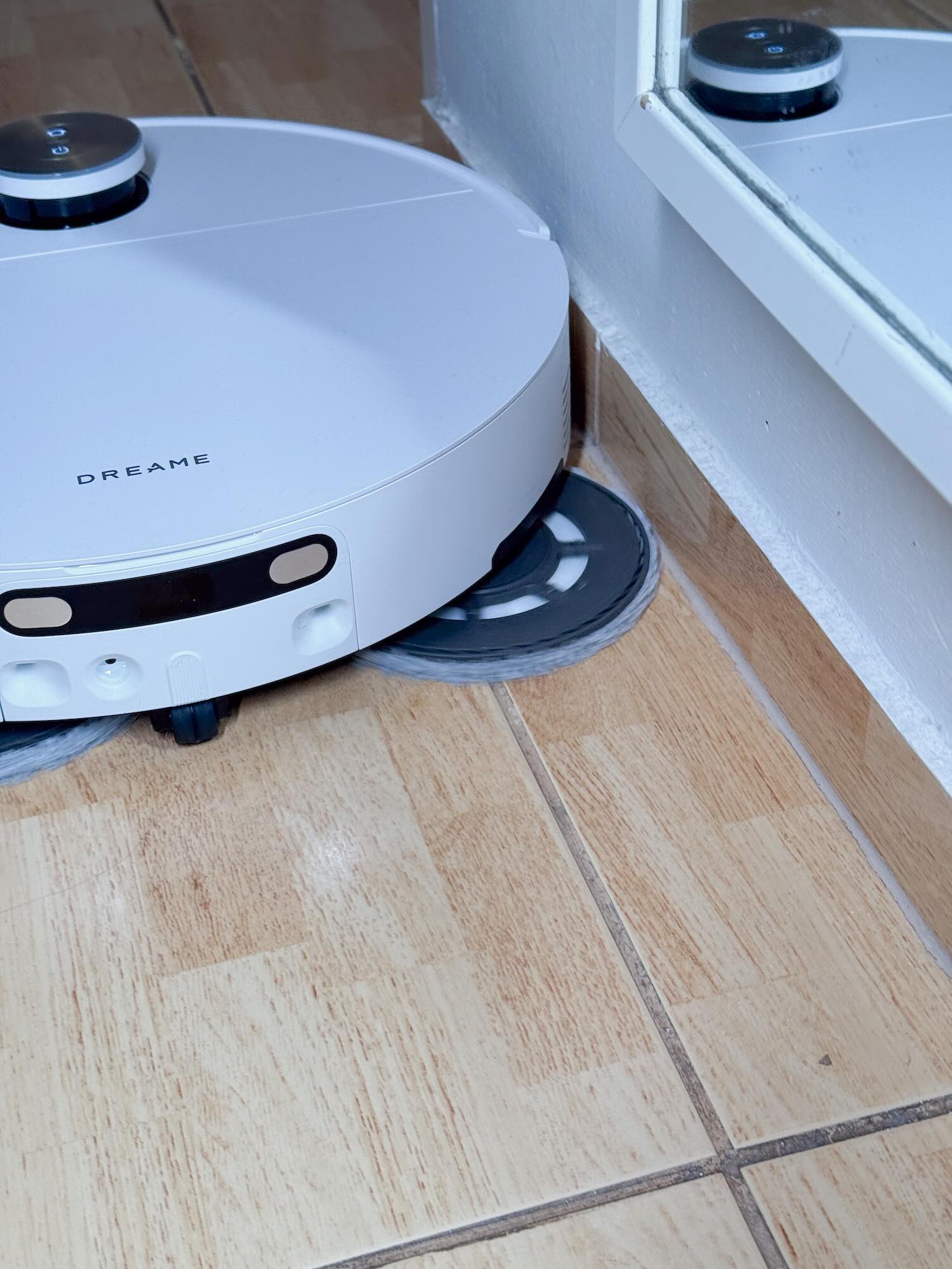 Dwie kamery 120 stopni, wsparte algorytmami AI składają się na system OmniSight, który rozpoznaje ponad 280 typów obiektów z milimetrową precyzją, choćby w całkowitych ciemnościach. Najnowsza generacja systemu wizyjnego gwarantuje rozpoznawanie obiektów o wielkości 10 milimetrów, co jest najwyższą wartością na rynku. Do tego przeszkodą przestały być lustra, połyskujące powierzchnie i inne obiekty, które mogłyby wpłynąć na sprzątanie. Dość powiedzieć, iż Dreame jak na razie jest jedynym producentem, którego robot bezbłędnie rozpoznał lustro w moim przedpokoju i nie stworzył mapy, w której coś znajduje się po drugiej stronie lustra. W najnowszej odsłonie możliwości skanowania pomieszczeń są wzniesione na wyższy poziom.
