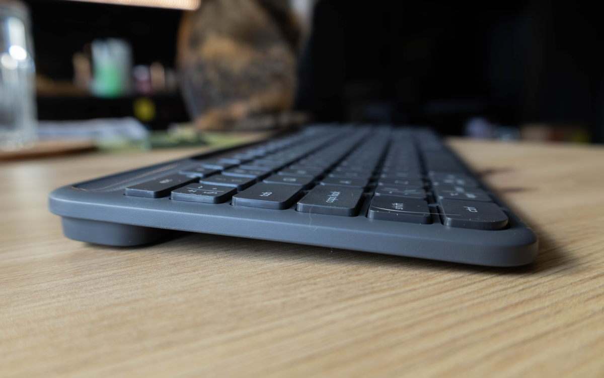 Czy na Logitech Slim Solar+ pisze się wygodnie? Z kilku względów nie jest to najwygodniejsza klawiatura na świecie (i nie najcichsza, jej klawisze wręcz grzechoczą), ale sprawdzi się tam, gdzie klika się raczej sporadycznie – na przykład w gabinetach medycznych czy przy kasach mniejszych sklepów. Mimo iż jej tworzywo jest dość porowate, to palce potrafią się na nim ślizgać, a przez to łatwiej o przypadkowe kliknięcia i literówki. Poza tym brak podświetlenia potrafi utrudniać pracę.