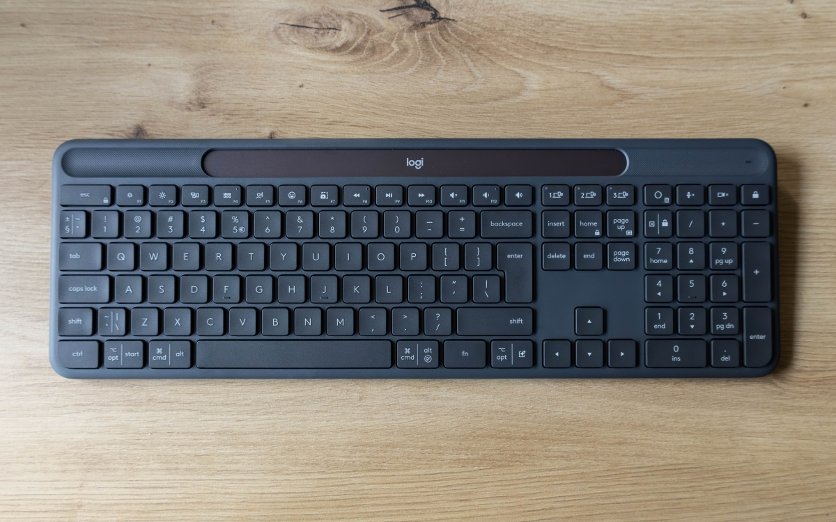 Logitech Slim Solar+ K980 to pełnowymiarowa, membranowa klawiatura bezprzewodowa, która działa w oparciu o akumulator ładowany energią pochodzącą ze światła – sztucznego i słonecznego. Jest kompatybilna z komputerami z Windows, Linux, macOS i ChromeOS oraz urządzeniami przenośnymi z iPadOS, iOS oraz Androidem, a o obsługiwane przez nią standardy łączności to Bluetooth Low Energy oraz radiowa 2,4 Hz.