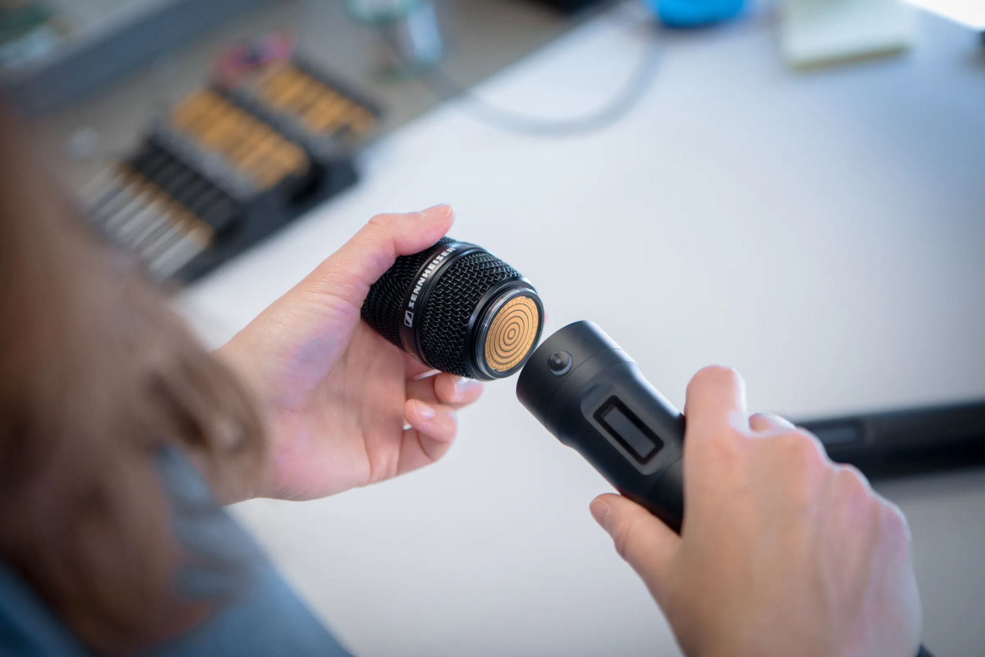 Sercem systemu po stronie wykonawcy jest mikrofon ręczny Spectera SKM. To elegancka, aluminiowa konstrukcja z wyświetlaczem OLED, kompatybilna ze standardowymi kapsułami Sennheiser i Neumann.