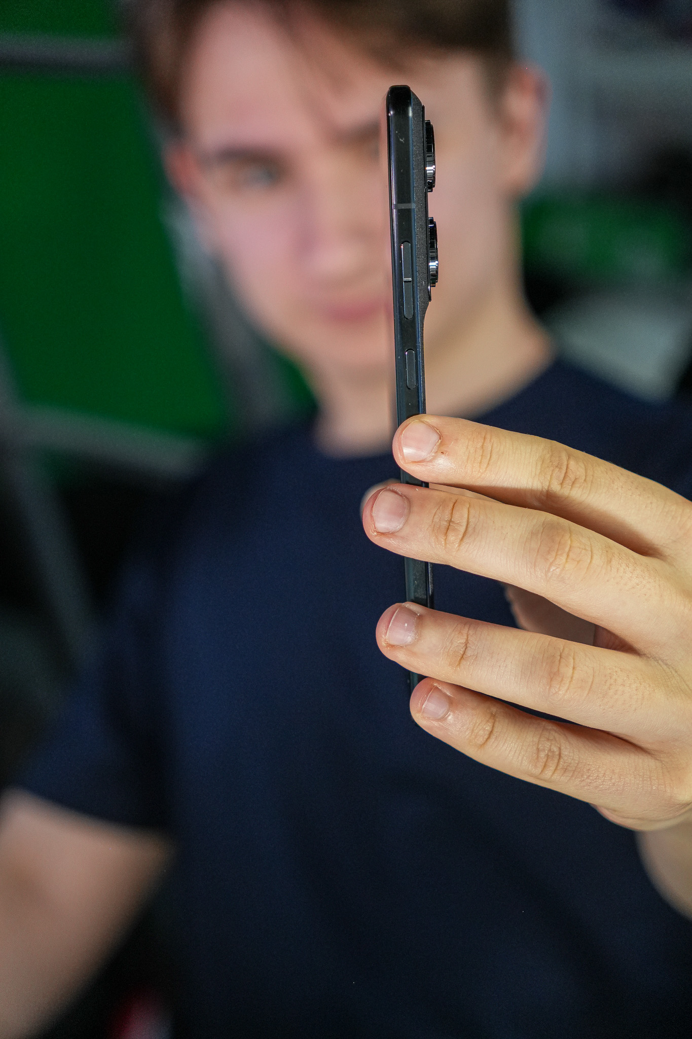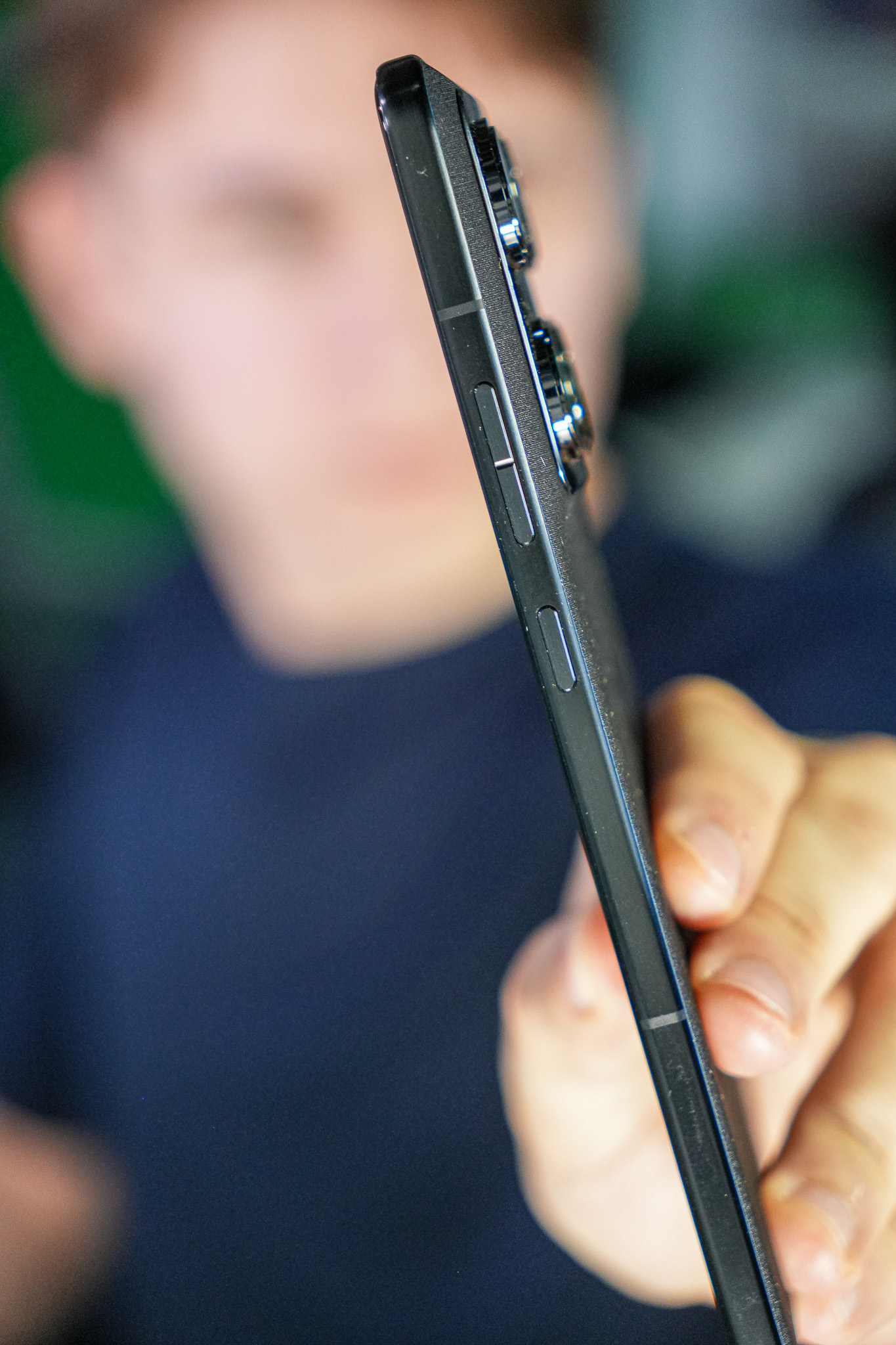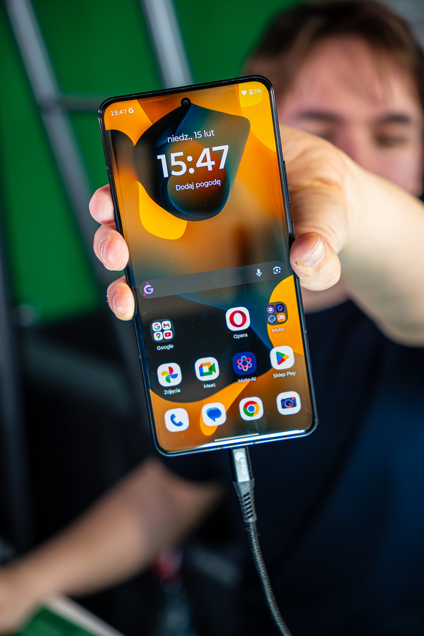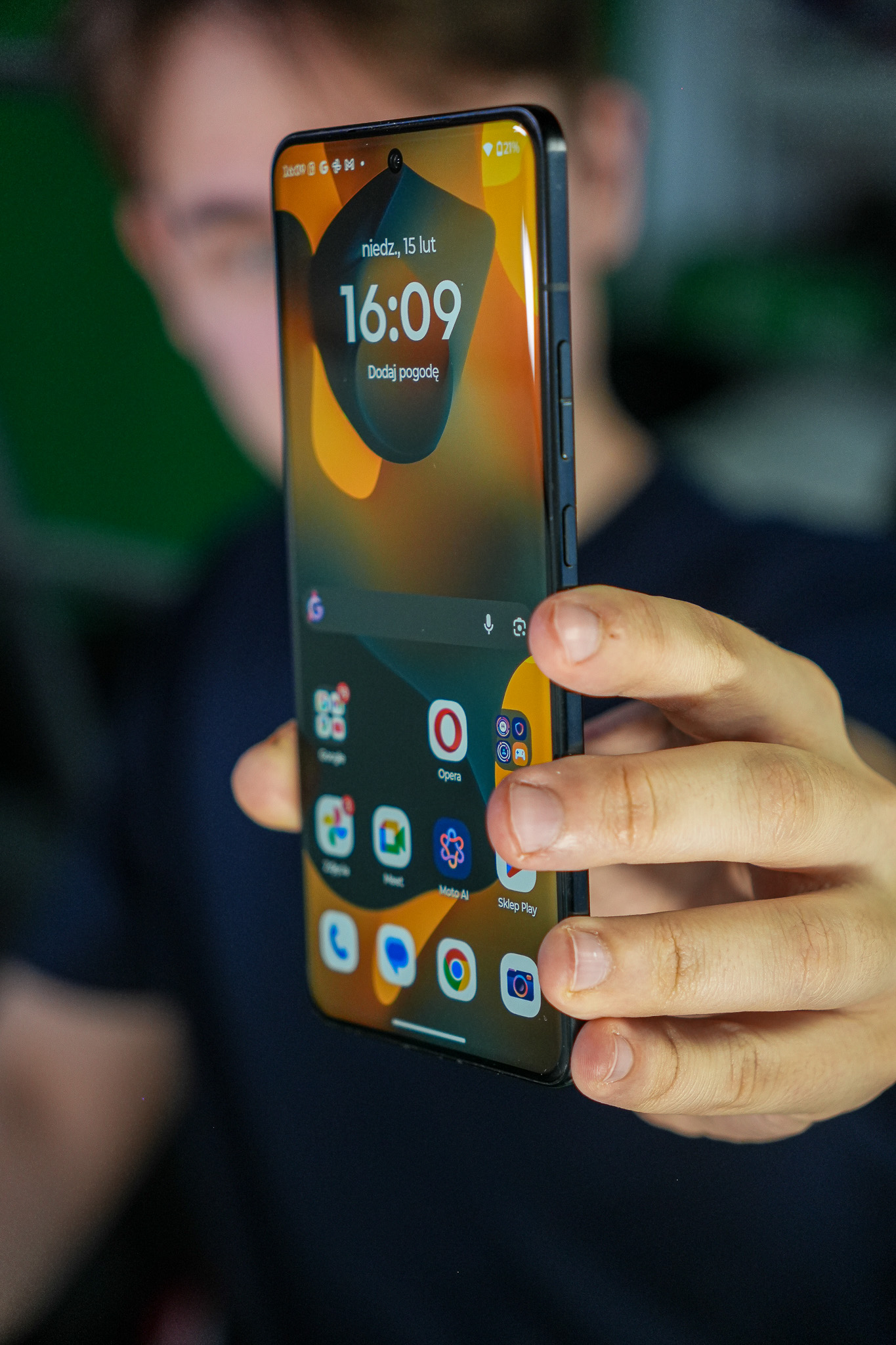 Dla porównania, Galaxy S24 Ultra waży ponad 230 gramów, co mocno czuć w nadgarstku. Motorola wsuwa się do kieszeni marynarki niemal niezauważalnie. Obudowa wykonana z aluminium lotniczego i szkła Gorilla Glass Victus 2 jest spasowana bez zarzutu, a fizyczne przyciski mają bardzo precyzyjny klik.