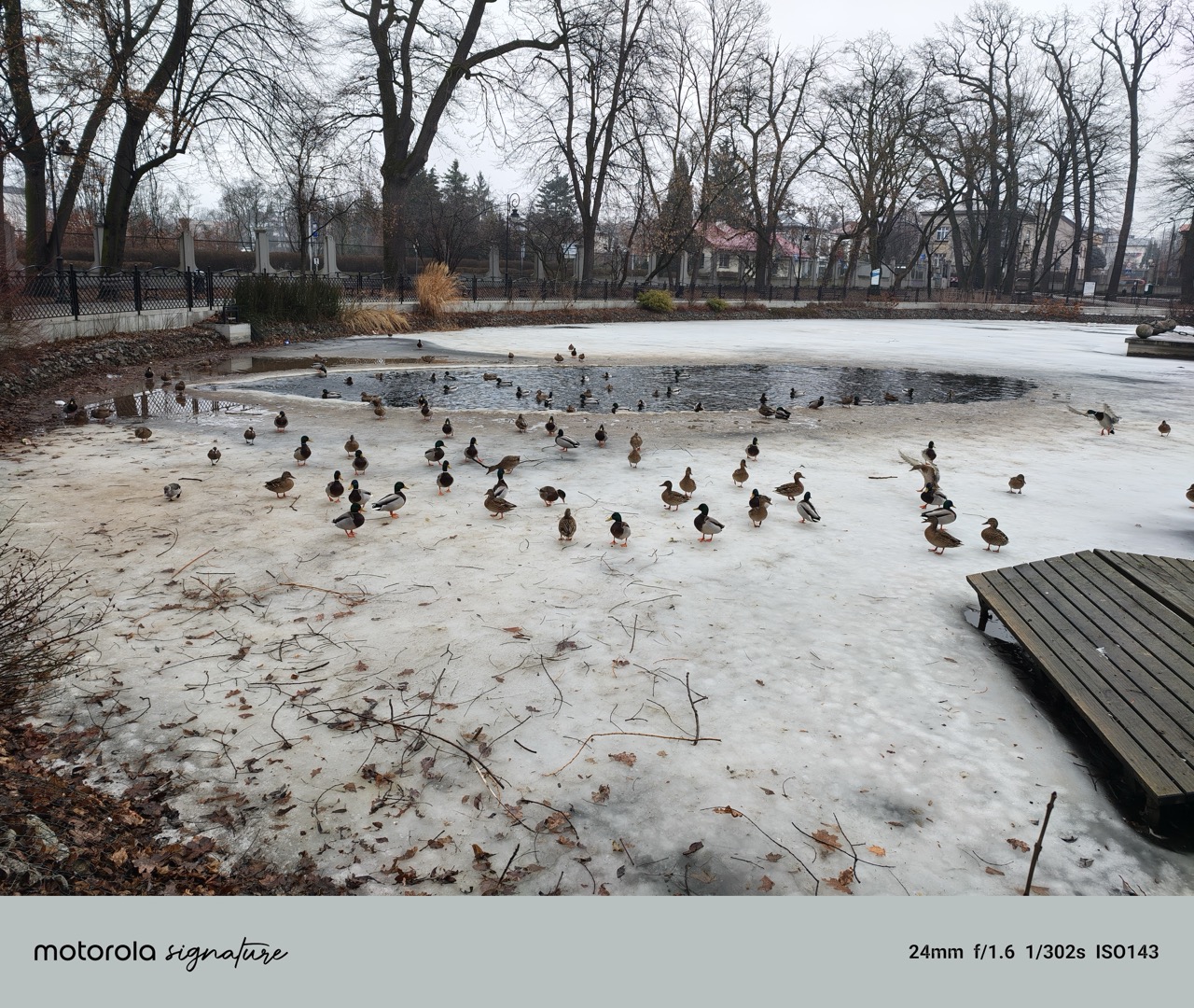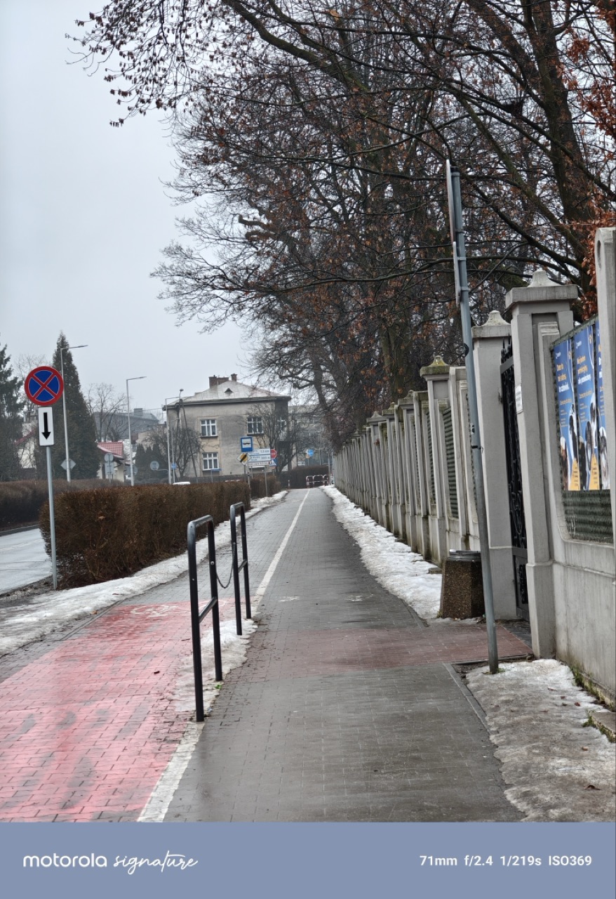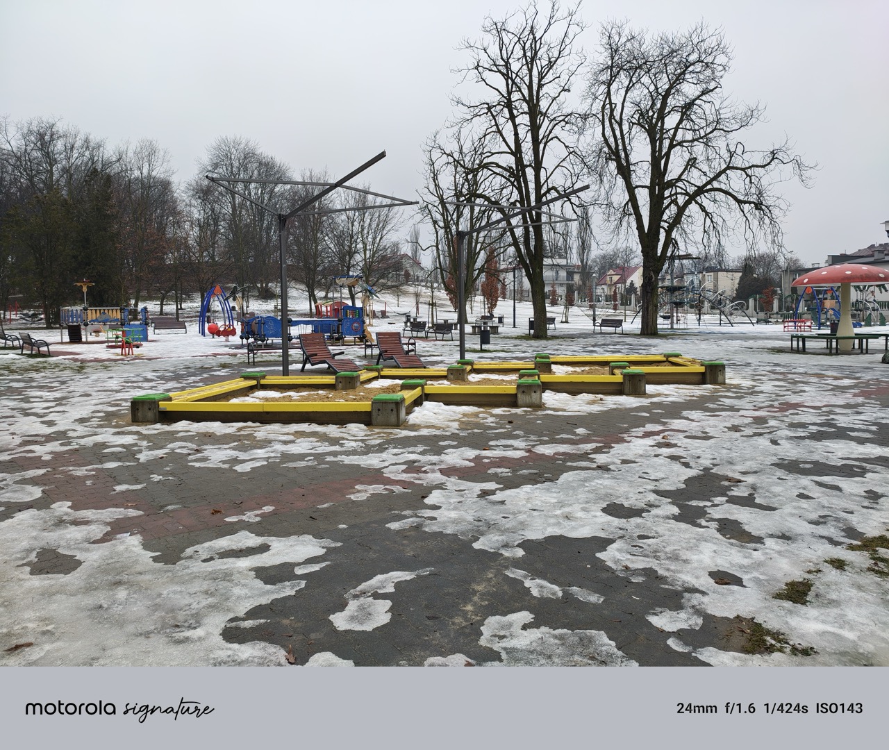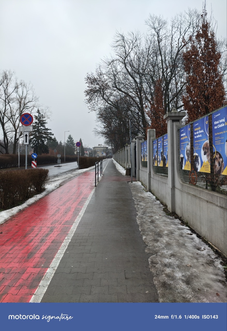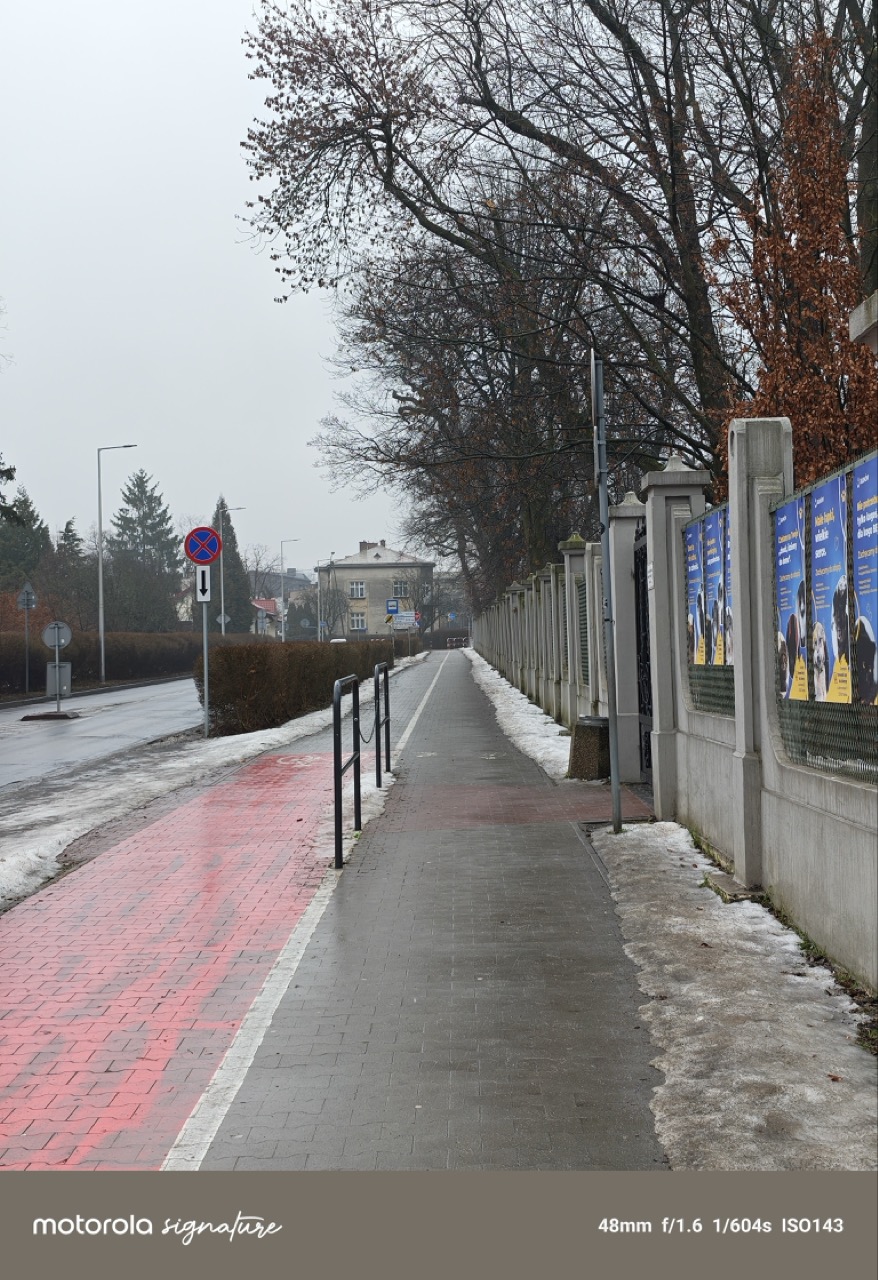 Szeroki kąt 50 MP (pole widzenia 122 stopnie) sprawdza się bardzo dobrze, służąc również jako świetny aparat do ujęć makro. Niestety, fotografia nocna w wykonaniu Motoroli bywa kapryśna. Algorytmy gubią się w ciemniejszych zaułkach, czasem zbyt agresywnie wyostrzając krawędzie obiektów, a innym razem zostawiając cyfrowy szum w cieniach. Podczas nocnej obserwacji w terenie sprzęt wciąż ustępuje liderom od Google czy Apple, którym zrobienie dobrego zdjęcia w mroku przychodzi ze znacznie większą powtarzalnością.