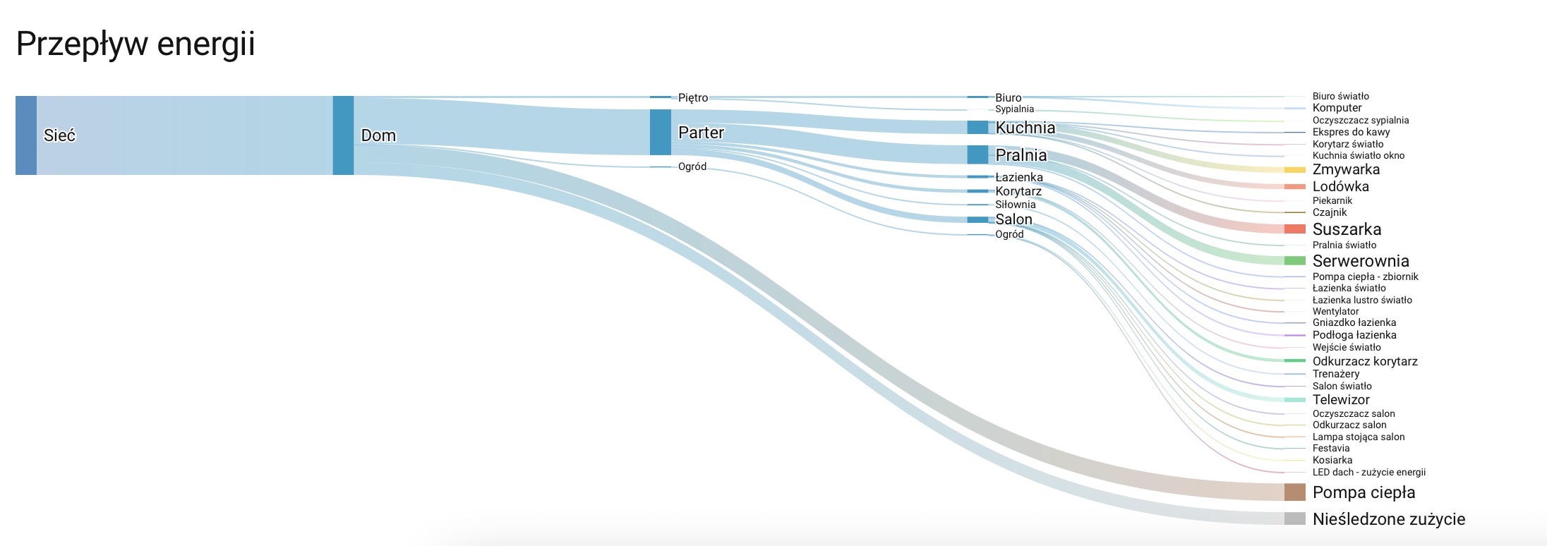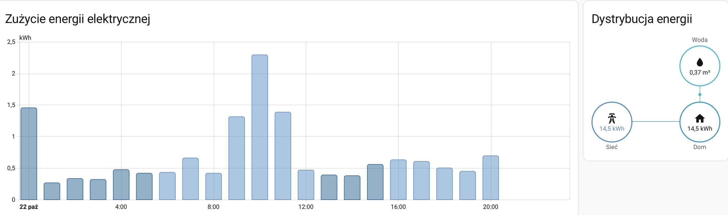 Zużycie całościowe było więc monitorowane, a importowanie tego na żywo do Home Assistanta dawało mi pojęcie na temat tego, ile codziennie zużywam i w jakich godzinach zużycie jest największe.