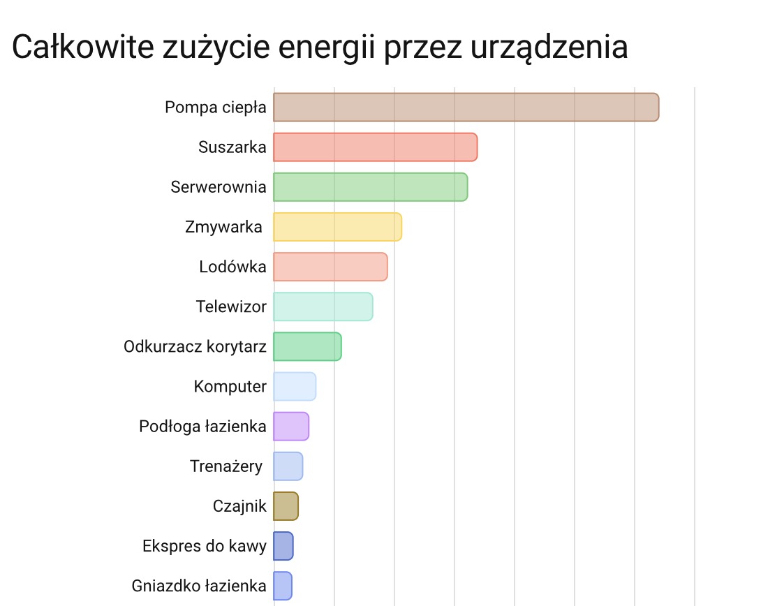 Gigantyczne wartości potrafiła też wygenerować – zero zaskoczenia – suszarka do ubrań. Tą do włosów nie ma się co przejmować (przynajmniej w domu z jedną osobą z włosami i drugą prawie już bez), ale widząc dni, gdzie suszarka wciągała więcej prądu niż pompa ciepła (grzejąca wodę użytkową i grzewczą) uznałem, iż może jednak czasem nie zaszkodzi mi się wysilić i rozwiesić rzeczy na klasycznej suszarce.