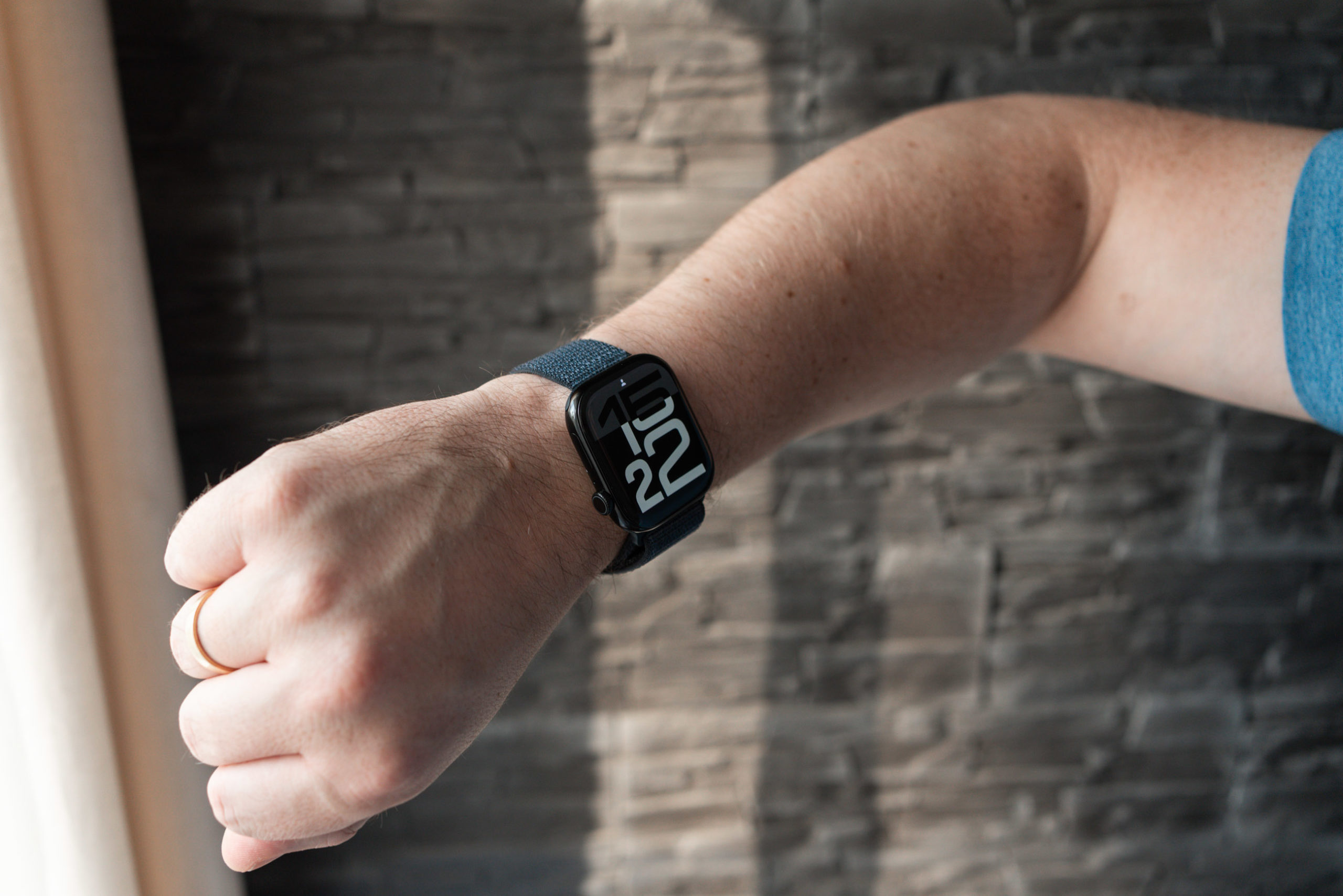 To mniejszy wariant 46 mm, więc może nie pasować na mniejsze nadgarstki. Polecam go szczególnie osobom z większymi rękami. Sam korzystam z 10. generacji Apple Watcha na co dzień i nie widzę potrzeby wymiany na nowszą generację. W komplecie znajdziemy pleciony pasek sportowy. Nic nie stoi na przeszkodzie, by później zamówić inny.