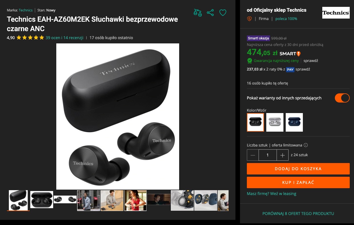 Na pierwszej stronie promocji Allegro Days wyróżnia się propozycja marki Technics – słuchawki bezprzewodowe. Sprzęt standardowo kosztuje 599 zł, natomiast w promocji kupimy go o 125 zł taniej – w cenie 474 zł.