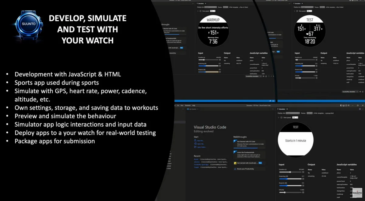 Do tworzenia aplikacji SuuntoPlus niezbędne jest narzędzie SuuntoPlus Editor, będące bezpłatnym rozszerzeniem do programu Visual Studio Code. Jak podaje producent, w edytorze twórcy mogą m.in. symulować dane GPS, tętno, wysokość i inne parametry treningowe, przetestować je dzięki wbudowanego symulatora zegarka, a końcowo – wdrożyć je bezpośrednio na własne urządzenie Suunto.