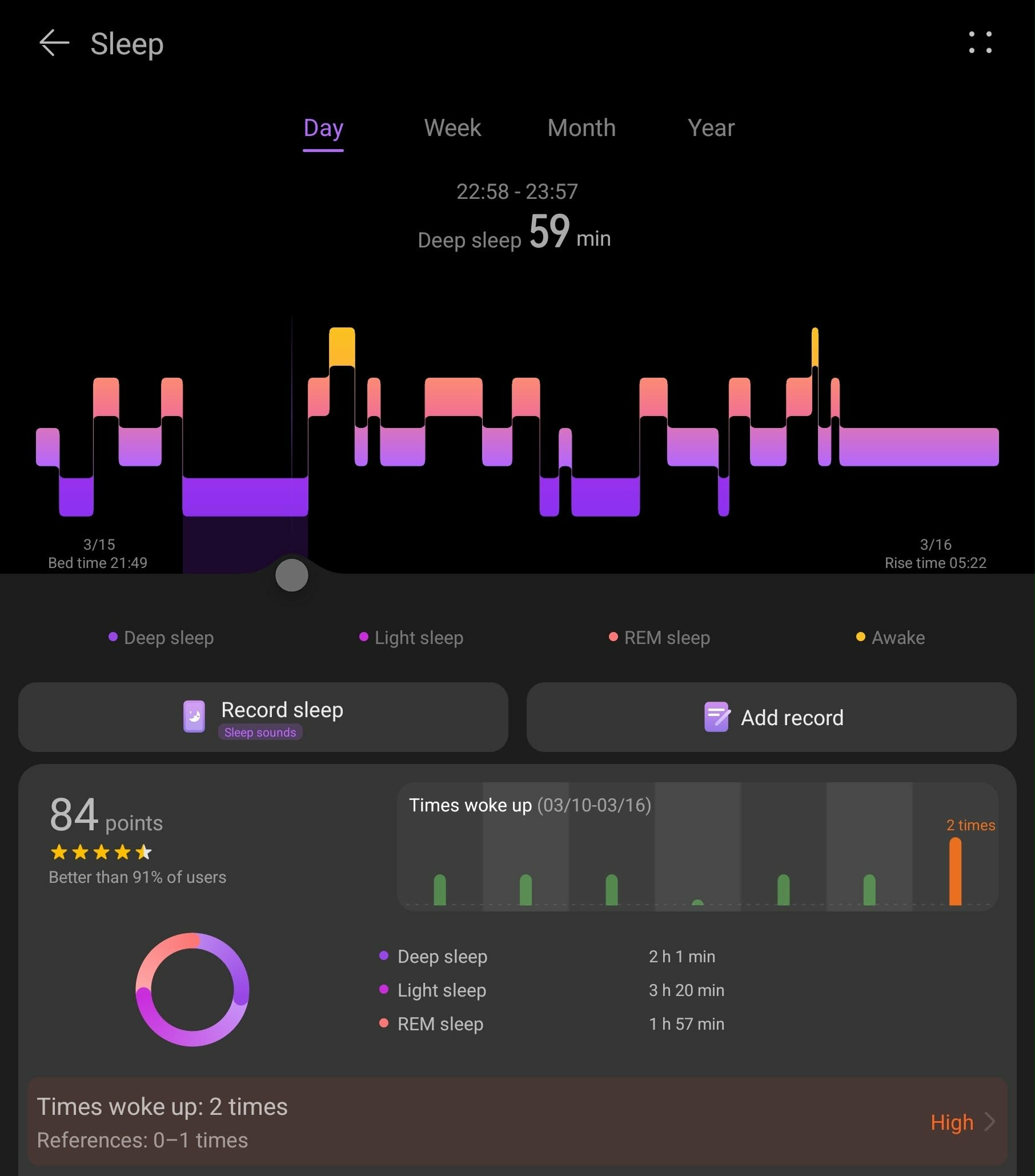Osiem godzin w łóżku nie przekłada się na osiem godzin snu. Świetnie widać to, kiedy rozłożymy sen na fazy: głębokiego snu, REM, snu płytkiego i przebudzenia. Możesz spędzić osiem godzin w łóżku i mieć tylko godzinę głębokiego snu. Wyrzut hormonu wzrostu, konsolidacja pamięci mięśniowej, naprawa mikrourazów – to wszystko dzieje się w śnie głębokim, nie przy płytkim śnie przerywanym pobudkami. Godziny w łóżku to nie to samo co regeneracja. Zegarek to rozróżnia i pokazuje wpływ alkoholu czy późnej kolacji.