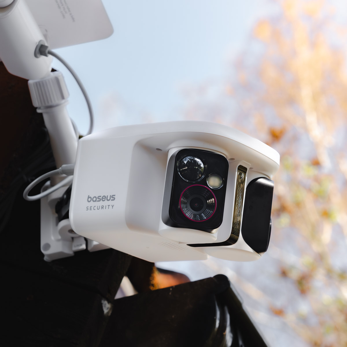 Ile kamer trzeba zainstalować, żeby monitorować spory obszar dookoła domu, do tego jeszcze w sytuacji, kiedy kamery montujemy na samym narożniku? Baseus uznał, iż odpowiedź brzmi: jedną.