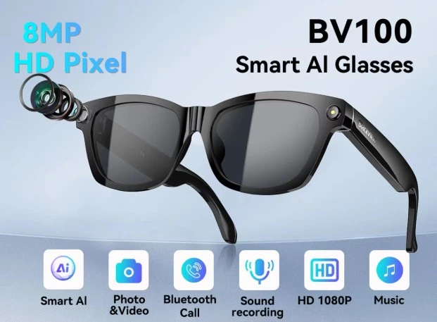 Grafika: BlackviewOstatnia z propozycji to kosztujące zaledwie 223 złote z kodem CDPL07 okulary Blackview BV100. Mają głośniki stereo, mikrofon z redukcją szumów oraz łączność Bluetooth 5.4 do połączenia z telefonem. Możesz robić nimi zdjęcia, kręcić filmy i nawiązywać za ich pomocą połączenia, oczywiście przez sparowany telefon.