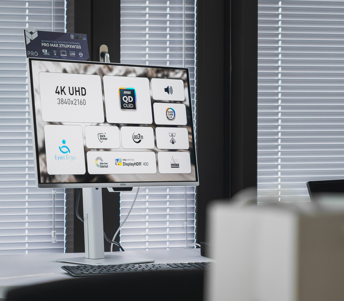Otóż: monitor, dokładniej monitor z serii Pro Max, ze wspaniałą matrycą QD-OLED, specjalnymi dodatkami pozwalającymi ją chronić i ułatwiać nam życie (m.in. system wykrywania, czy ktoś siedzi przed monitorem, czy nie), rozdzielczością 4K i przekątną 27″.