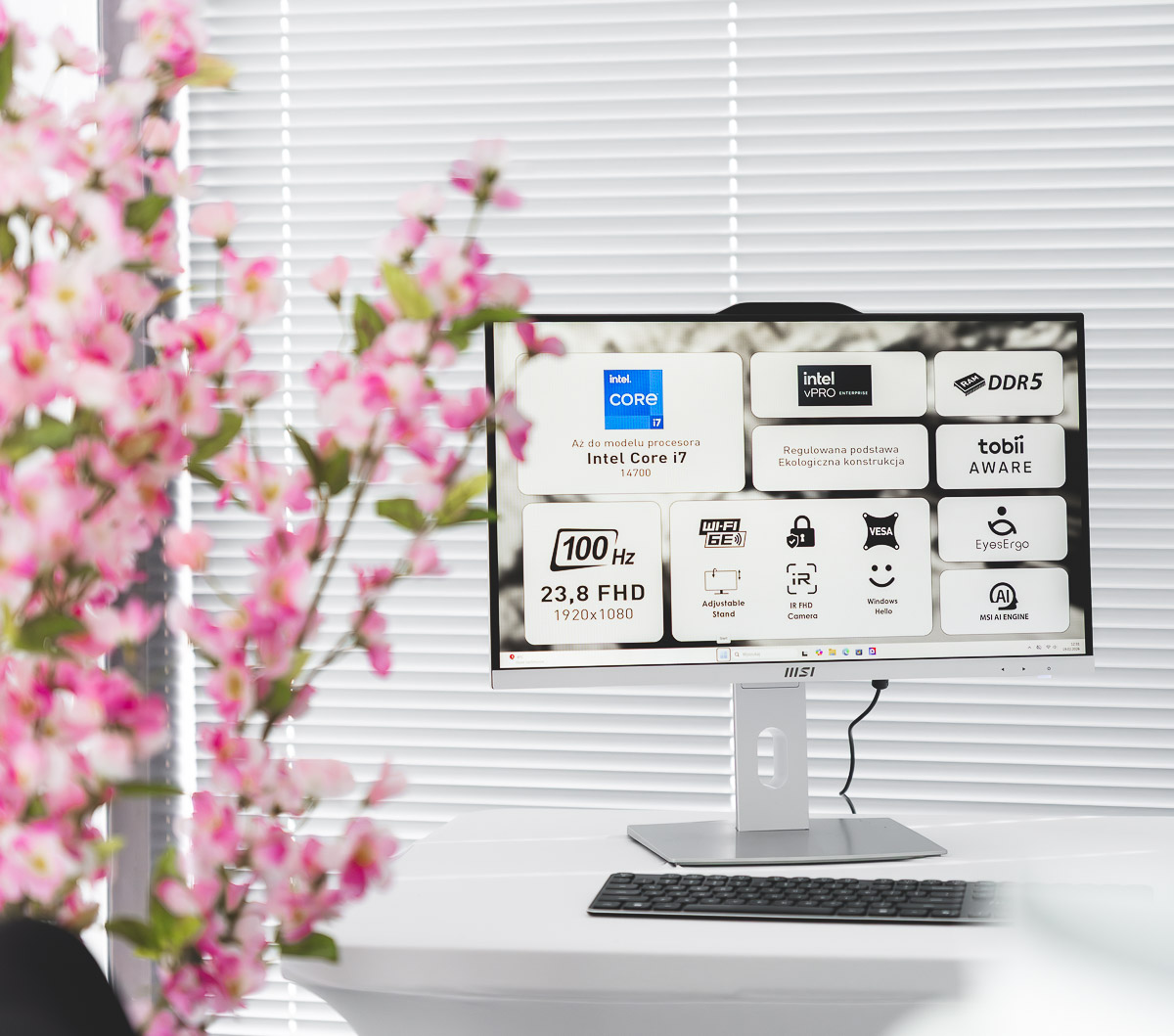 MSI PRO AP242PTzn. sprawa jest dość skomplikowana, bo MSI ma w tej chwili w ofercie i monitory, i komputery typu AiO, i na pierwszy rzut oka trudno czasem stwierdzić, który z nich jest który. Bez zaglądania do specyfikacji nie pomoże czasem choćby wędrówka za „monitor”. Komputery AiO potrafią być u MSI imponująco cienkie, a z drugiej strony – wyższe modele monitorów potrafią być tak rozbudowane, iż przypominają pełnoprawny komputer.