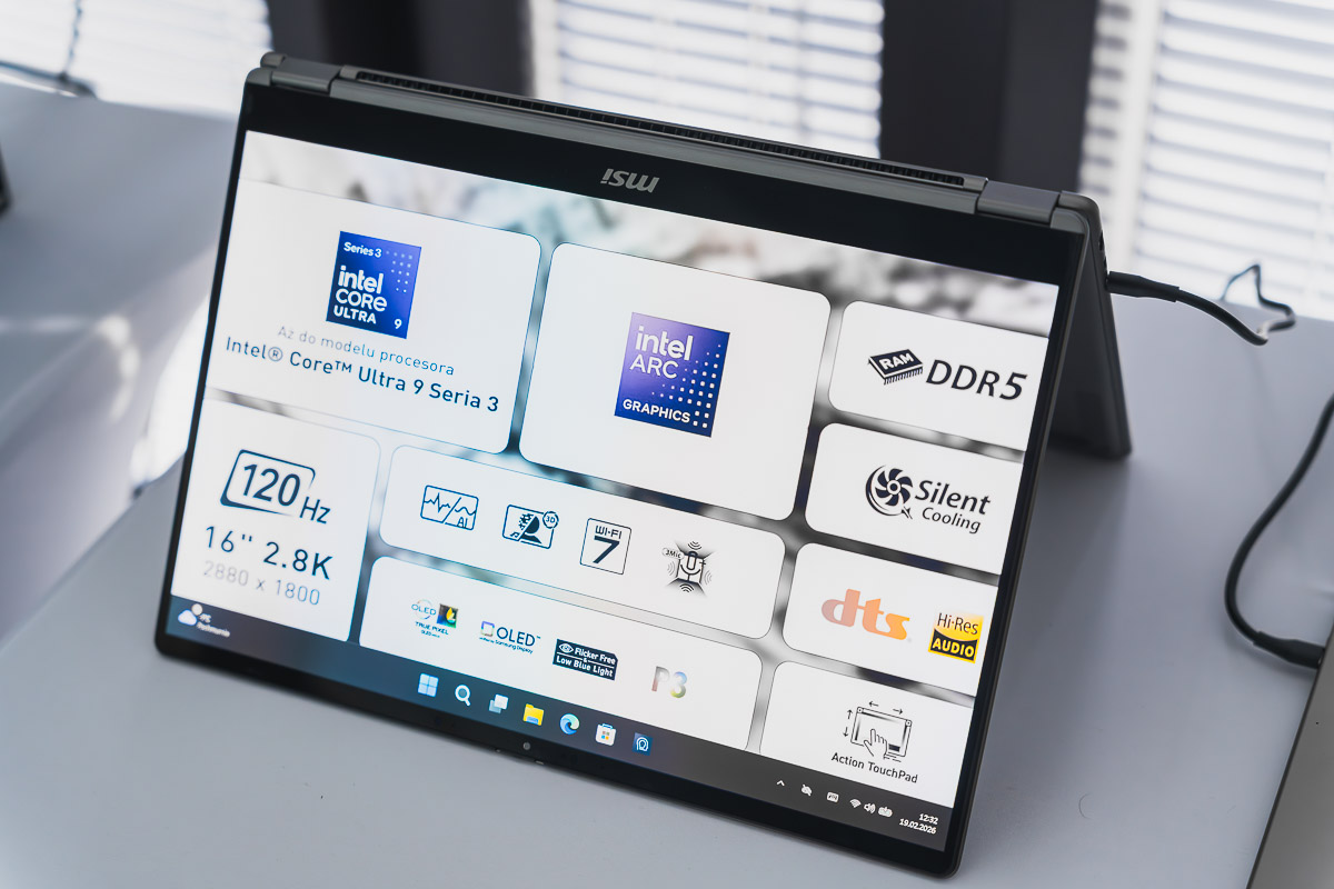 A same ceny? Sztandarowy model, czyli MSI Prestige 16 Flip kosztuje w tej chwili 7799 zł i za tę kwotę dostaniemy procesor Core Ultra 9 386H, Windowsa 11, układ graficzny Intel Arc, ekran dotykowy z rysikiem, 32 GB RAM i 2-terabajtowy dysk NVMe. Wariant bez dopisku Flip, z dyskiem 1 TB i układem Core Ultra 7 355 kosztuje natomiast 6499 zł.