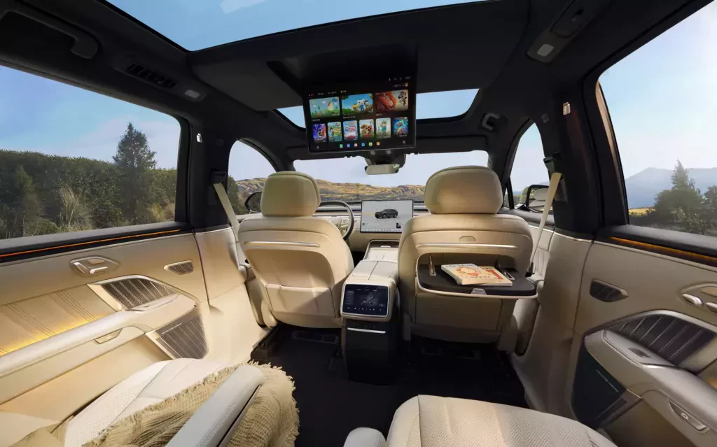 Jednakże, we wnętrzu L90 znajdziemy mnóstwo technologii. Deska rozdzielcza zawiera 17,2-calowy wyświetlacz systemu informacyjno-rozrywkowego. Pasażerowie drugiego rzędu mają do dyspozycji składany ekran o przekątnej 17,3 cala. Jest on umieszczony bezpośrednio w podsufitce. Z tyłu znajduje się również 8-calowy ekran dodatkowy, a z przodu rozległy, 35-calowy wyświetlacz przezierny. Wszystkie modele standardowo wyposażone są w 23-głośnikowy system nagłośnienia i zintegrowaną lodówkę o pojemności prawie 9 litrów.