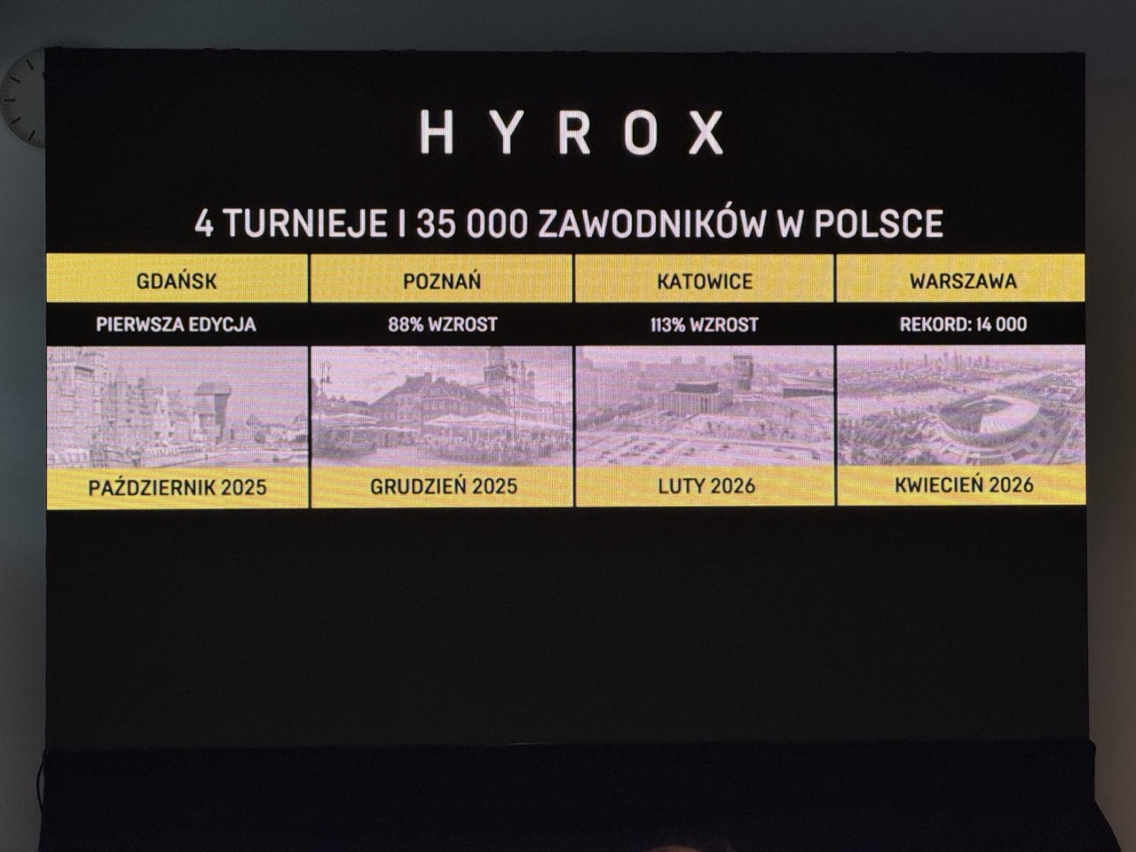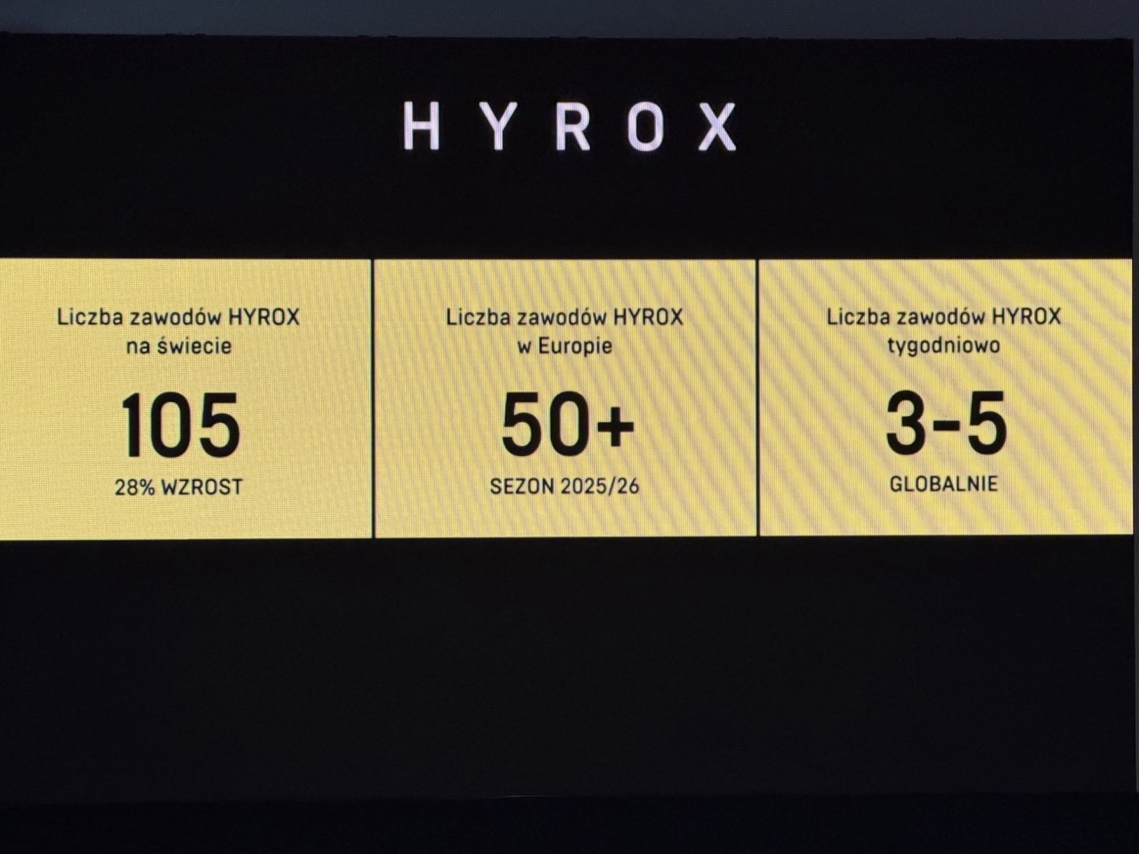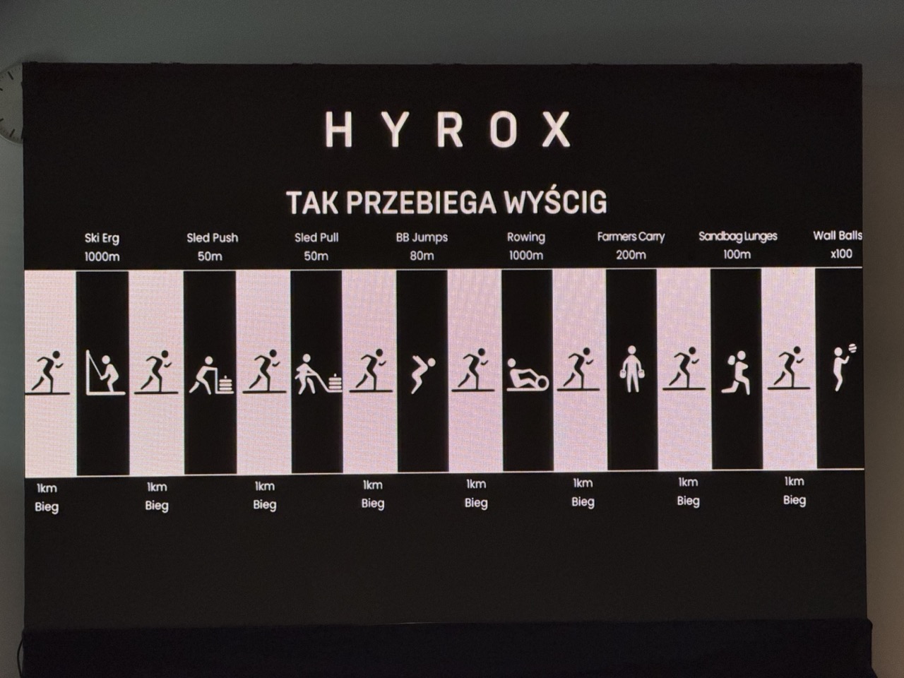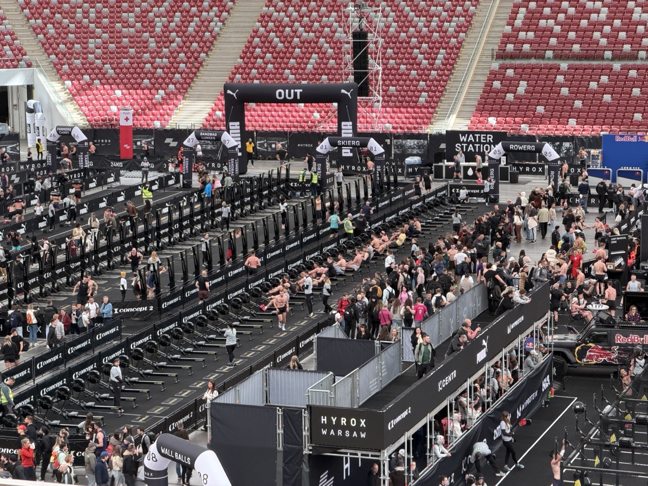Średni czas potrzebny do ukończenia takiego wyścigu sprawnościowego, nazywanego maratonem fitnessu, to ok. 90 min. w tej chwili każda osoba przebywająca w stolicy może sprawdzić, jak to wygląda w praktyce, na wspomnianym stadionie PGE Narodowym. W ten weekend realizowane są w końcu zawody Hyrox Warsaw w ramach Wielkiego Finału Głównego Sezonu Hyrox.