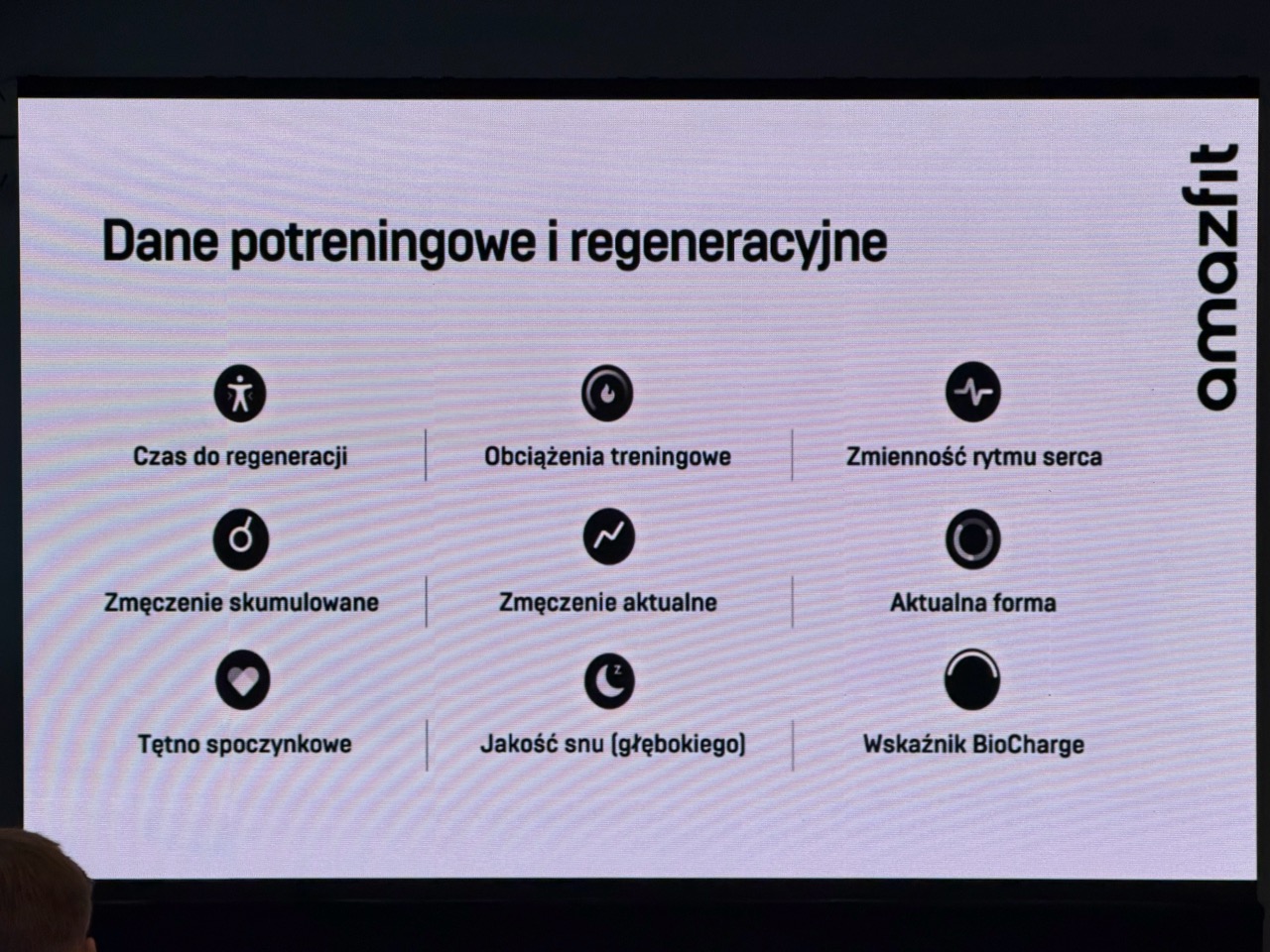Parametry, które są mierzone przez akcesoria marki Amazfit, to z kolei Czas do regeneracji, Obciążenie treningowe, Zmienność rytmu serca, Zmęczenie skumulowane, Zmęczenie aktualne, Aktualna forma, Tętno spoczynkowe, Jakość snu głębokiego i wskaźnik Biocharge. Dzięki nim apka na telefon synchronizowana z zegarkiem powie, kiedy zawodnik będzie gotów na następny trening.