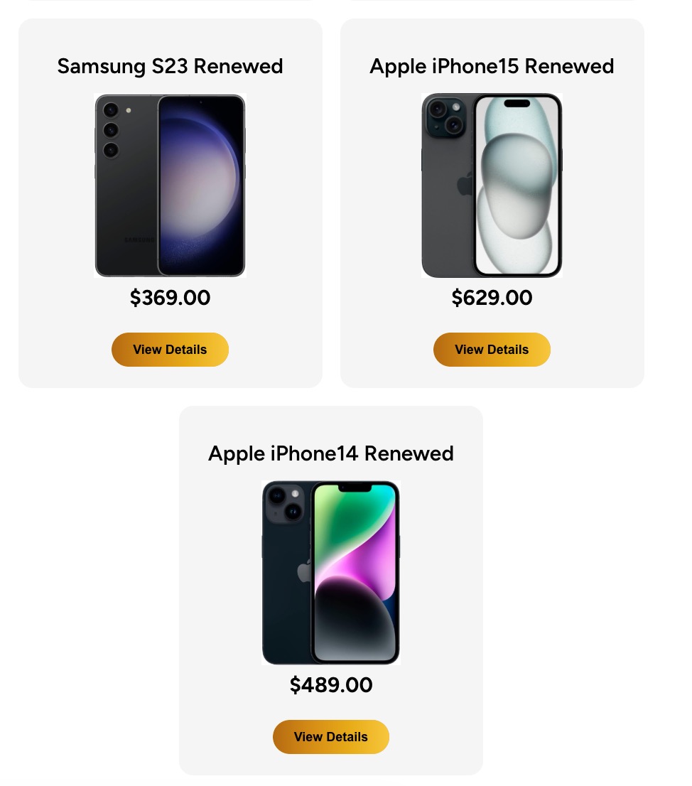Oczywiście wszystko w dolarach, bo oferta dotyczy tylko USA. Wszystkie urządzenia są „odnowione” – czyli używane, ale przygotowane na nowo do sprzedaży.