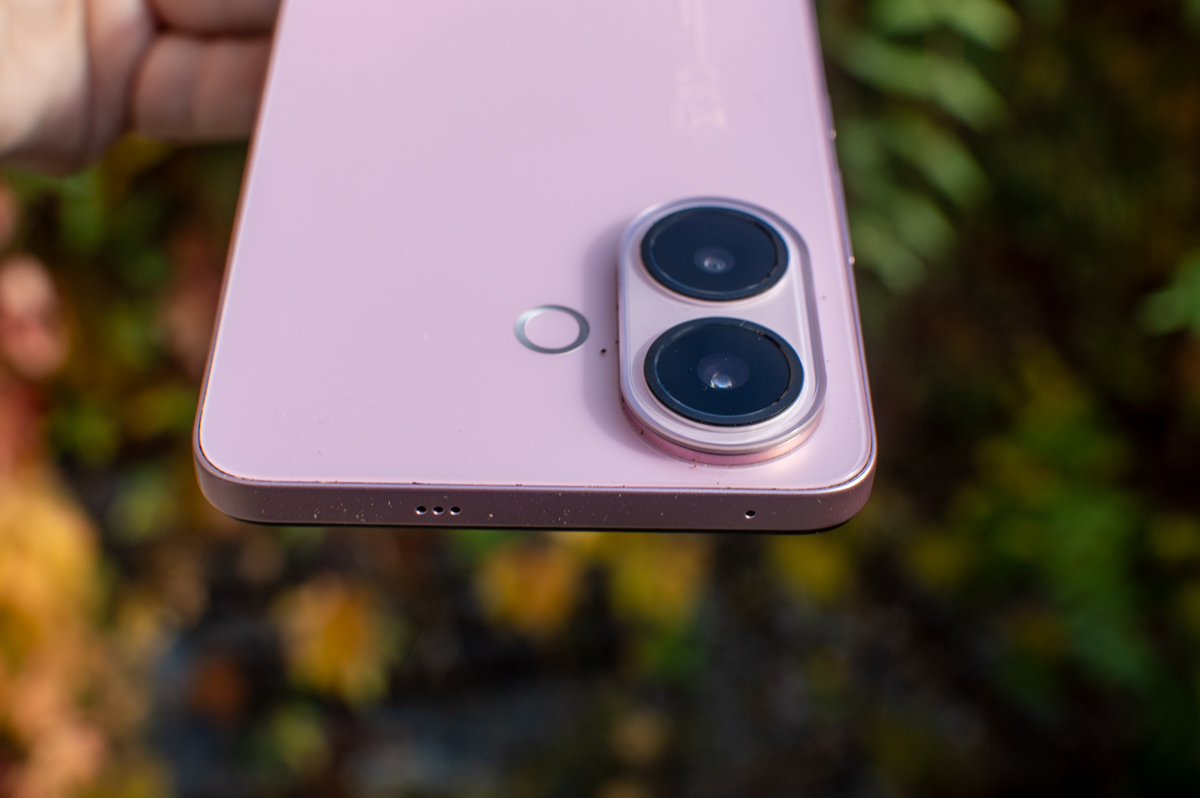 Różowa odmiana jest nieco grubsza, co może wynikać z odmiennego wykończenia tylnej pokrywy. Szczególnie interesująca jest wyspa aparatów – minimalistyczna, przezroczysta konstrukcja, która subtelnie wtapia się w tył obudowy, nie krzycząc o uwagę, ale jednocześnie dając wyrazisty akcent stylistyczny.
