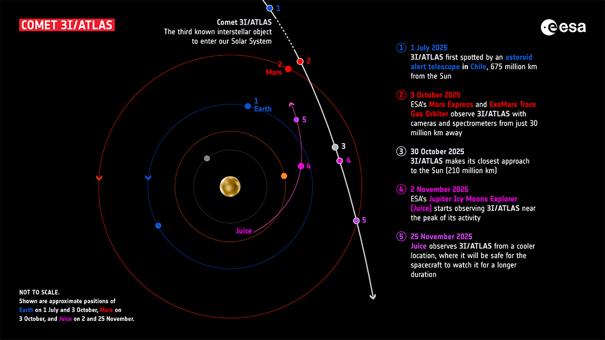 Kometa 3I/ATLAS, trzeci potwierdzony obiekt międzygwiezdny w historii, została odkryta 1 lipca przez teleskop systemu ATLAS w Chile. Początkowo jej trajektoria była wyznaczana wyłącznie na podstawie obserwacji z Ziemi. Przełom nastąpił w październiku, gdy kometa minęła Marsa w odległości około 29 mln kilometrów.