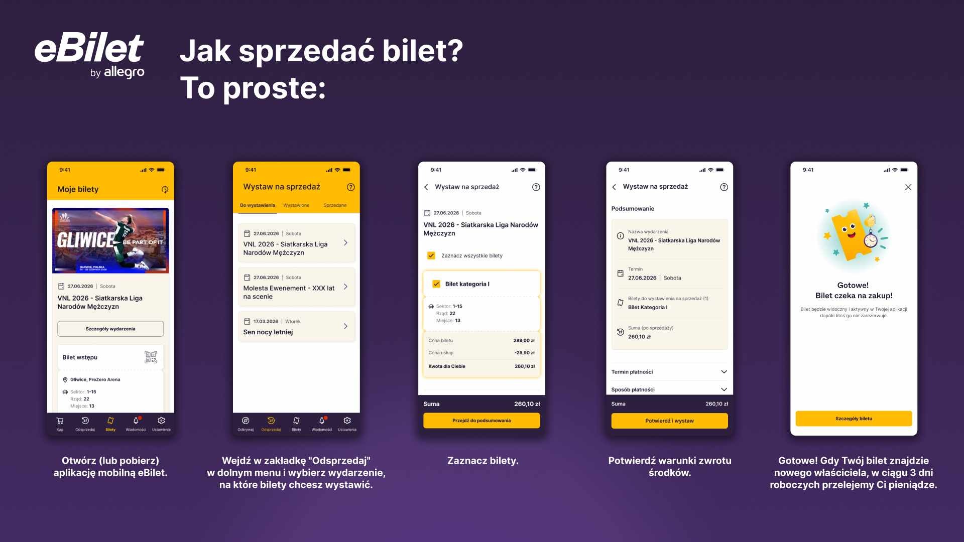eBilet wprowadza teraz usługę odsprzedaży, która jest realizowana bezpośrednio za pośrednictwem platformy. Mówimy zatem o bezpiecznym i sprawdzonym rozwiązaniu, które w dodatku pozwala nabyć wejściówkę na wydarzenie w regularnej cenie, bez przepłacania. Rozwiązanie ma uporządkować rynek wtórny i stanowić bezpieczne miejsce, gdzie możemy odsprzedać bilet na wydarzenie, na którym z jakiegoś względu nie możemy się pojawić.