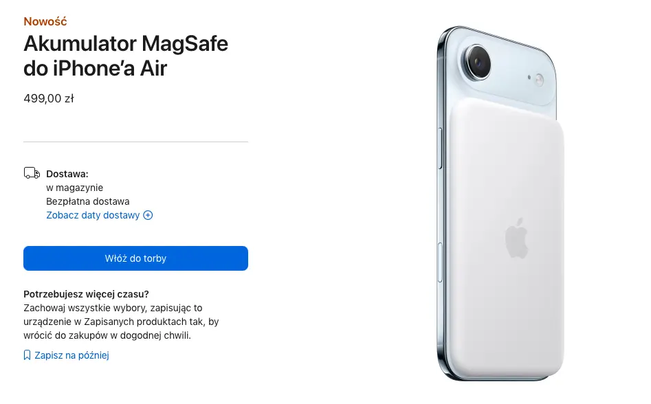 Posiadacze wybranych produktów amerykańskiego giganta dostrzegli możliwość zainstalowania aktualizacji. Chodzi o powerbank Apple, który dedykowany jest najnowszemu iPhone’owi Air. Tak, mówimy o tym chyba najbardziej wyśmiewanym akcesorium ze stajni producenta. Przypominamy, iż kosztuje on w naszym kraju 499 złotych.