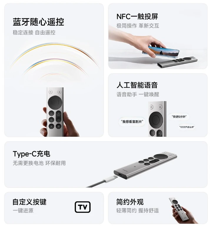 Xiaomi Bluetooth Remote 2 Pro jest lekki, smukły i podobno dobrze leży w dłoni. W środku znalazł się akumulator o pojemności 300 mAh, ładowany przez port USB-C. Za łączność odpowiada Bluetooth 5.4, a urządzenie współpracuje z telewizorami oraz TV boxami Xiaomi i Redmi.