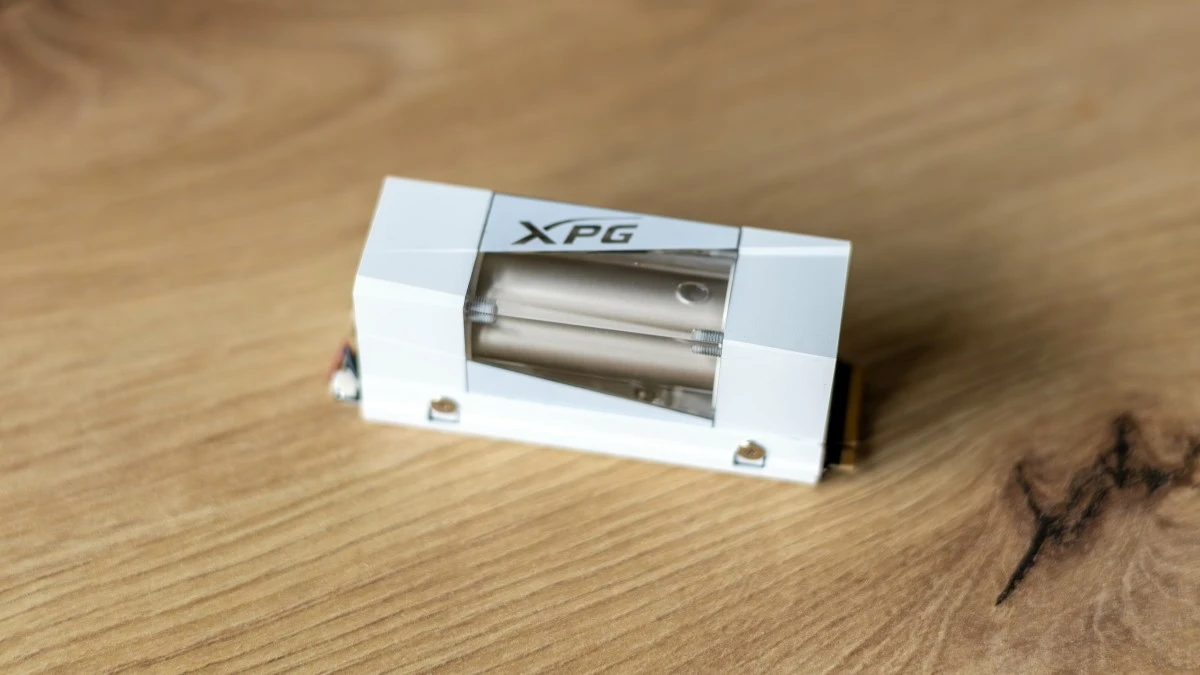 Radiator zbudowano z dwuwarstwowego bloku aluminiowego, w którego wnętrzu znajduje się miniaturowa komora cieczy. Podczas pracy ciecz odbiera ciepło z kontrolera i kości NAND, a dwa mikrowentylatory typu dual-fan push-pull aktywnie wymuszają cyrkulację powietrza wokół radiatora.