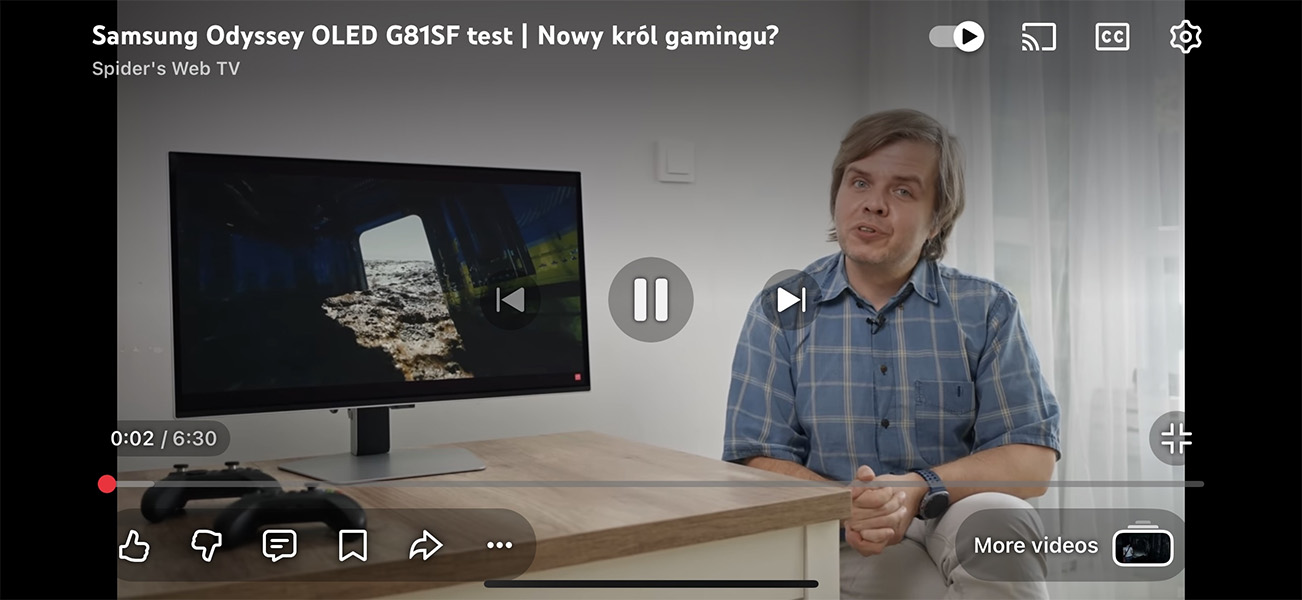 Nowy odtwarzacz wideo to największa i najbardziej widoczna zmiana wśród zmian ogłoszonych na platformie. Choć przyciski są teraz większe, całość sprawia wrażenie lżejszej i bardziej przejrzystej dzięki ograniczeniu liczby cieni i zbędnych warstw graficznych. Interfejs mniej zasłania sam film, a nowy układ ikon i delikatna przezroczystość elementów tworzą efekt podobny do „szklanego” efektu w języku projektowania Liquid Glass Apple’a, choć w znacznie subtelniejszej formie.