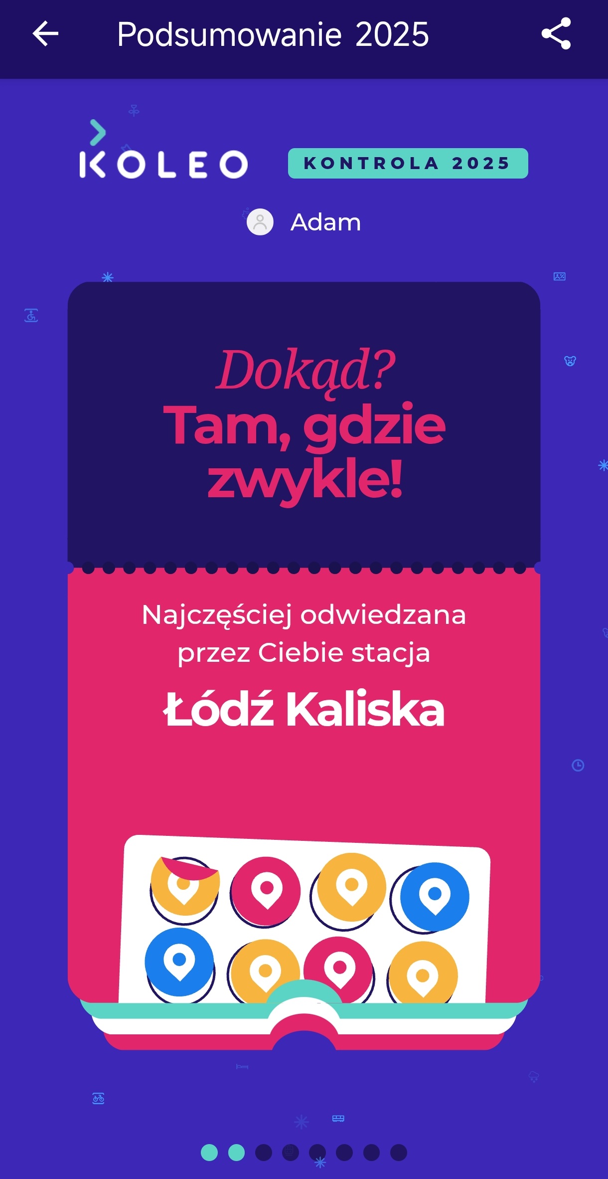 W aplikacji pozwalającej kupować bilety już znajdziemy podsumowanie tegorocznych podróży. Koleo pokazuje ulubionego przewoźnika, liczbę przebytych kilometrów i minut spędzonych w pociągu. Mamy też informacje nt. najczęściej przejeżdżanej trasy czy dworca, z którego startowaliśmy najwięcej razy.