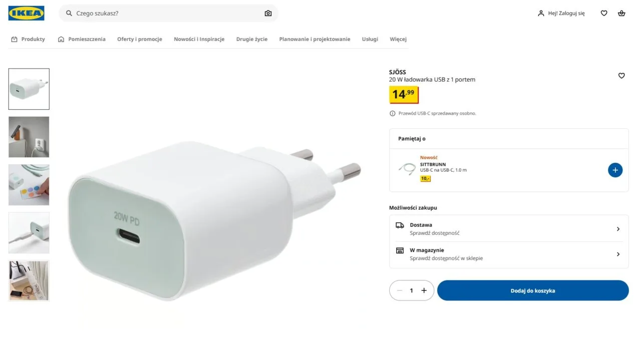 Konsumenci nierzadko przepłacają za podstawowe ładowarki USB-C na wyspach w supermarketach i innych punktach sprzedaży. Zdarza im się też kupować absolutnie najtańsze, niesprawdzone ładowarki z Chin, których parametry działania i bezpieczeństwo pozostawiają sporo do życzenia. Ładowarka USB-C SJÖSS z IKEA o mocy 20 W kosztuje zaledwie 14,99 złotych. Jest kompatybilna z technologią ładowania PD (Power Delivery) i bije jakością na głowę tanie ładowarki o niższej mocy. Te nierzadko sprzedaje się w zawyżonej cenie w sklepach GSM.