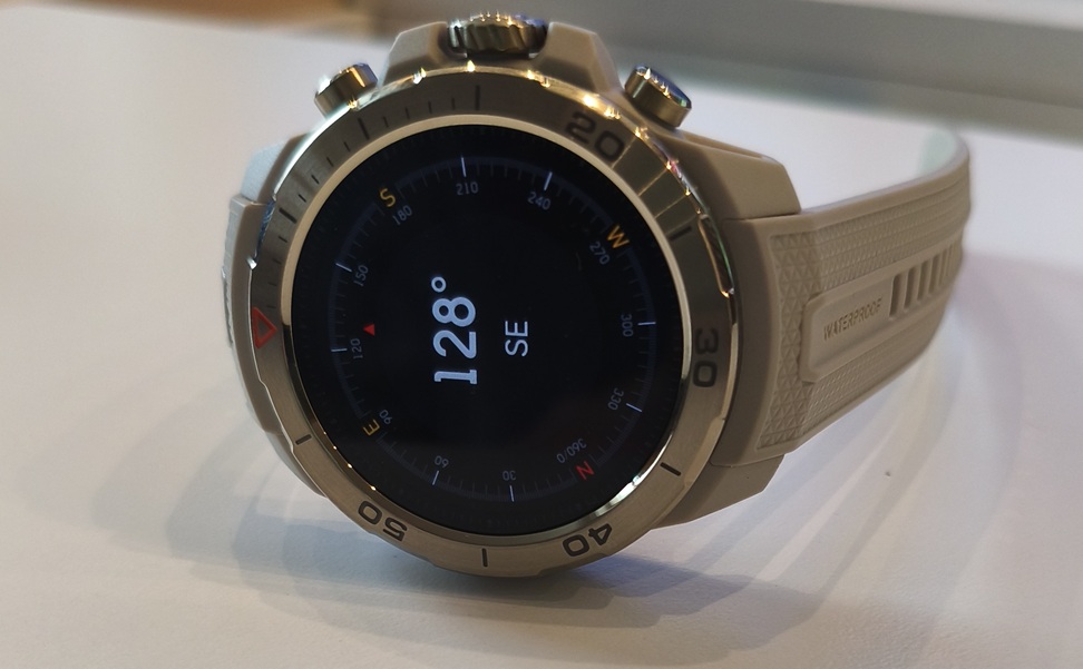 Już samo menu pokazuje, dla kogo jest to sprzęt. Wciskając górny przycisk, od razu uruchomiony zostanie kompas. Dostaniemy się do niego, również przesuwając palcem po ekranie w bok, będzie to pierwsza opcja, która się wyświetli. Nic dziwnego, bo GS Explorer sprawdzić ma się w naprawdę każdych warunkach. Koperta została wykonana ze stali nierdzewnej (316L), a plastik jest dodatkowo wzmocniony. Do tego dochodzi szkło Corning Gorilla (twardość 9H).