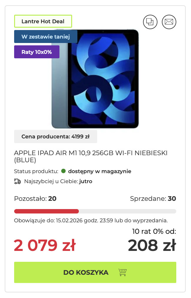 iPad Air M1, 256 GB, WiFi, niebieski: 4199 zł -> 2079 zł