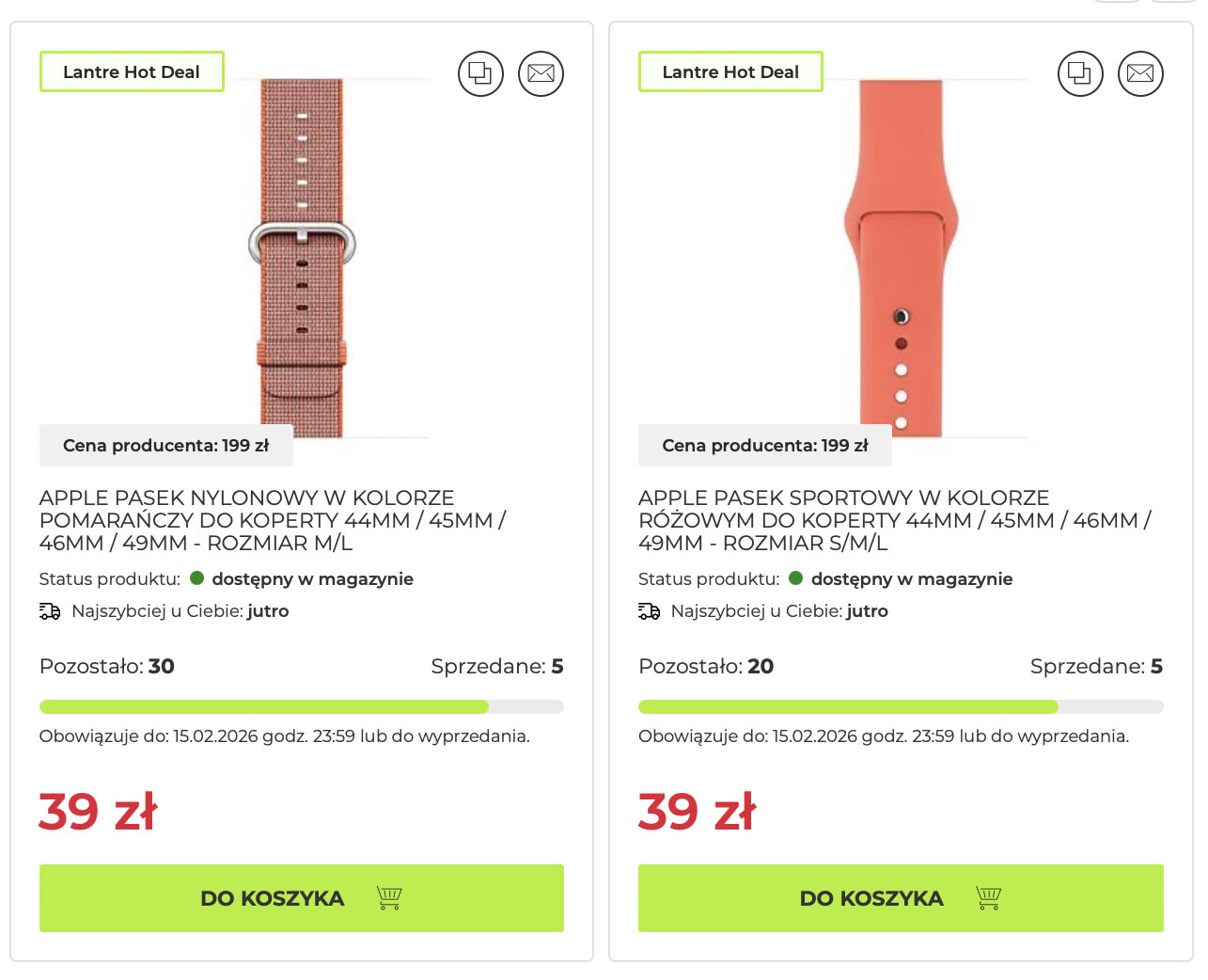 W ramach Winter Sale w Lantre w mocno ściętych cenach kupimy dziesiątki sprzętów firmy z Cupertino, w tym MacBooki, iPhony, iPady, Apple Watche oraz akcesoria (jak oryginalne paski Apple za 39 zł!).