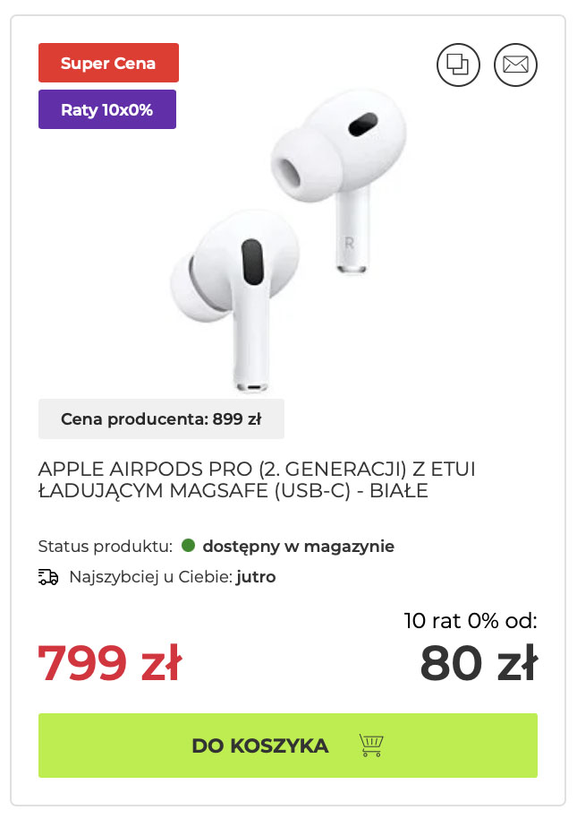 AirPods Pro 2 (USB-C): 899 zł -> 799 zł