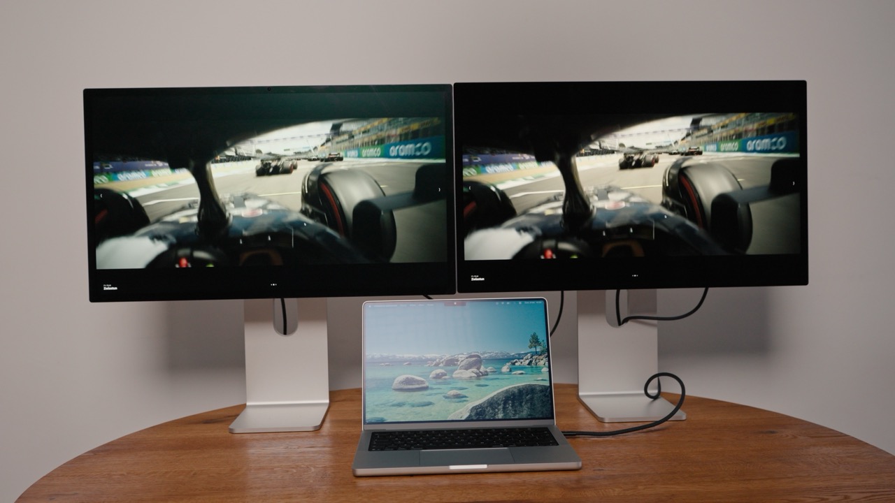 W ramach testu podpiąłem do monitora mój kilkuletni laptop do gier poprzez port USB, a ten bez problemu wykrył monitor Apple’a. Niestety w tym przypadku, jeżeli chcę korzystać z rozdzielczości 5K, to muszę zadowolić się jedynie 60-FPS-ami. Wynika to z faktu, iż ten komputer nie ma portu Thunderbolt 5, więc w chwili, gdy włączam tryb 120 Hz, to rozdzielczość zmniejsza się automatycznie do 4K.