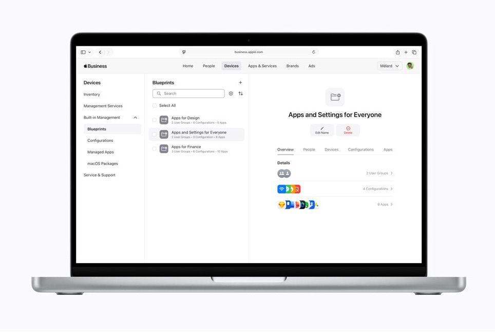 Apple Business zawiera gotowe szablony, które umożliwiają konfigurowanie Maków i iPhone’ów dzięki wstępnie ustawionych parametrów czy aplikacji. Oznacza to w praktyce, iż urządzenia przypisane do organizacji po wyciągnięciu z pudełka będą gotowe do użycia za sprawą zainstalowanego oprogramowania. Administratorzy oczywiście też są w stanie skonfigurować urządzenia w taki sposób, aby np. nie były wykorzystywane w innych celach niż służbowych.