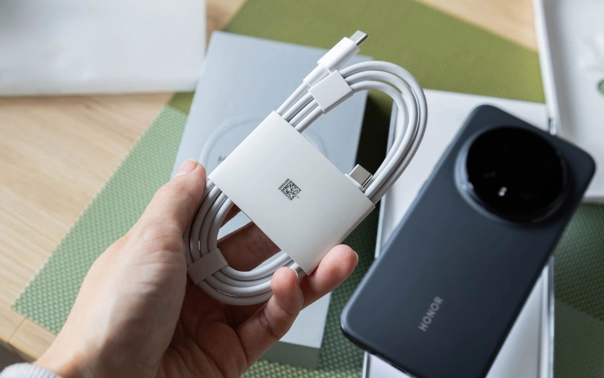 HONOR Magic8 Pro ma trafić do sprzedaży w dwóch wersjach kolorystycznych – złotej (Sunrise Gold) i czarnej (Black). Ja otrzymałam go w tej drugiej. W pudełku ze telefonem niestety nie znalazłam wiele, bo tylko niezbędny zestaw dokumentacji, przewodu USB-C i pinu do tacki SIM. Zarówno ładowarkę, jak i etui trzeba będzie zakupić do tego urządzenia oddzielnie.
